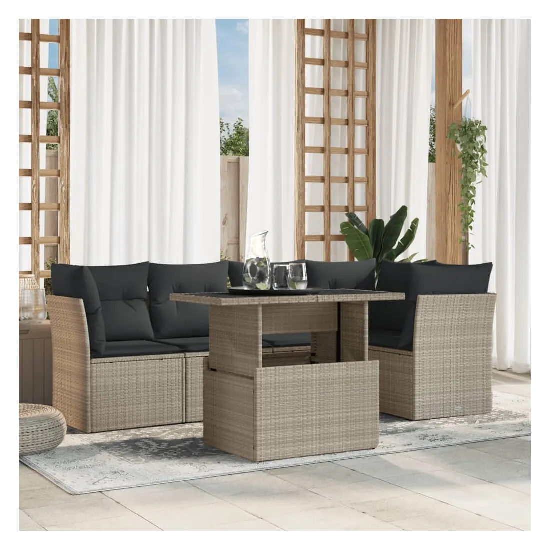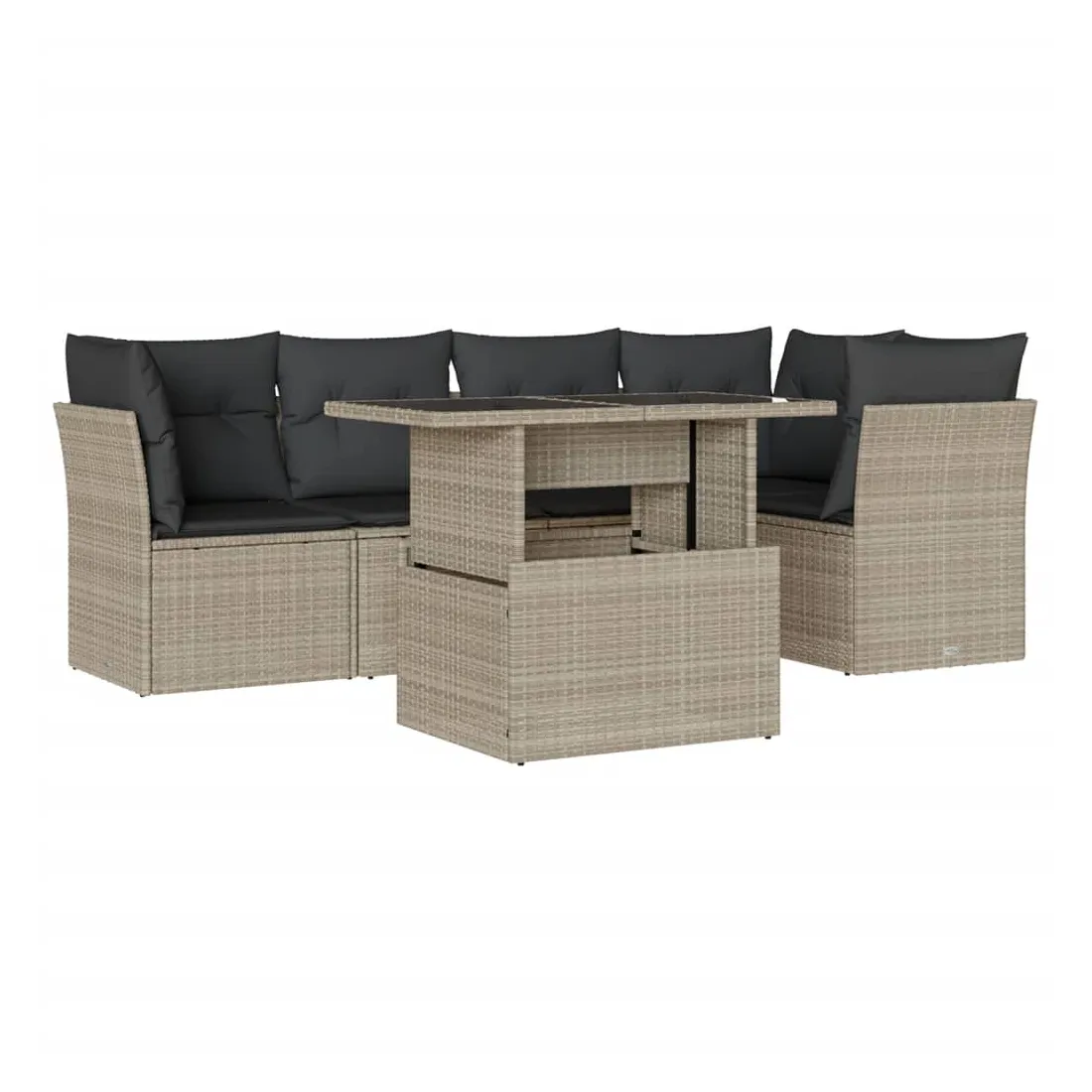 Salon de jardin 6 pcs avec coussins gris clair résine tressée