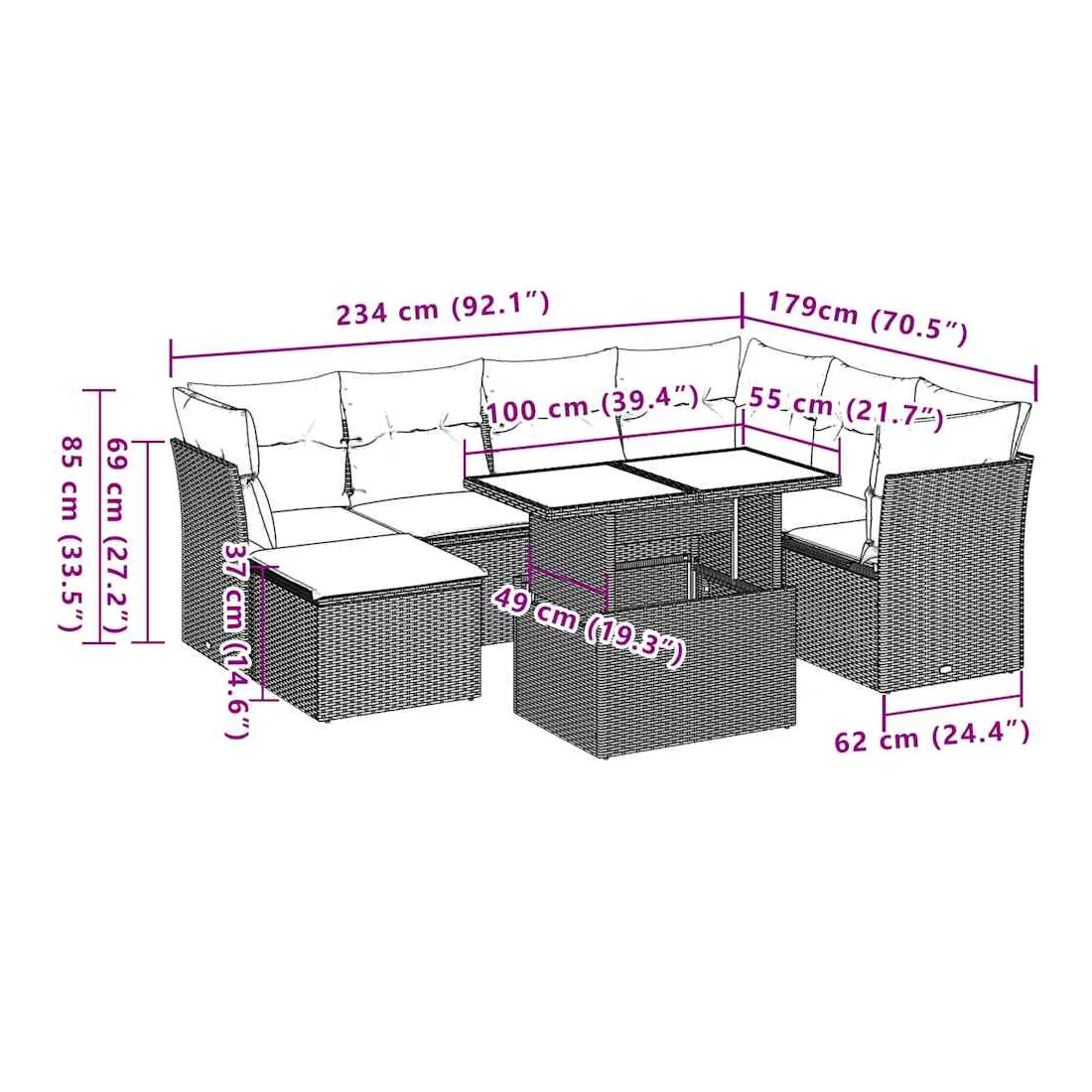 Cet ensemble de canapés de jardin est le complément parfait de votre arrière-cour, terrasse ou patio, offrant un espace confortable et accueillant pour discuter avec la famille et les amis ou simplement se détendre et profiter de l'extérieur. Matériau durable : la résine tressée, également connue sous le nom de poly rotin, est un matériau synthétique solide et nécessitant peu d'entretien qui ressemble au rotin naturel. Il est léger, facile à nettoyer et couramment utilisé pour les meubles d'extérieur en raison de sa durabilité et de ses propriétés de résistance aux intempéries.Dessus de table réglable : le dessus de table peut être soulevé pour rendre la table plus haute, ce qui transforme la table d'extérieur d'une table basse à une table de salle à manger. Elle est parfaite pour recevoir des invités ou prendre des repas à l'extérieur.Expérience d'assise confortable : ce mobilier d'extérieur, doté de coussins épais, offre une expérience d'assise confortable.Housse amovible et lavable : ces coussins de siège sont dotés de housses amovibles pour un lavage et un entretien faciles.Conception modulaire : cet ensemble de meubles d'extérieur a une conception modulaire, ce qui le rend complètement flexible et facile à déplacer, afin que vous puissiez créer un agencement de meubles d'extérieur personnalisé. Bon à savoir :Pour que vos meubles d'extérieur restent beaux, nous vous recommandons de les protéger avec une housse imperméable.