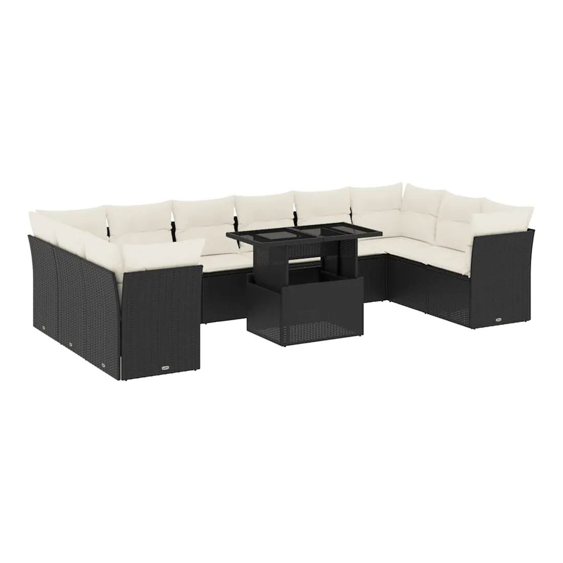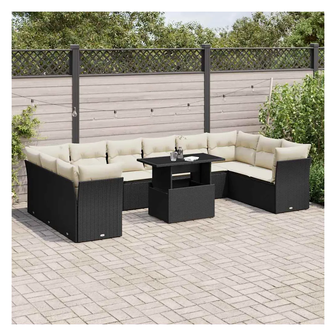 Salon de jardin 11 pcs avec coussins noir résine tressée