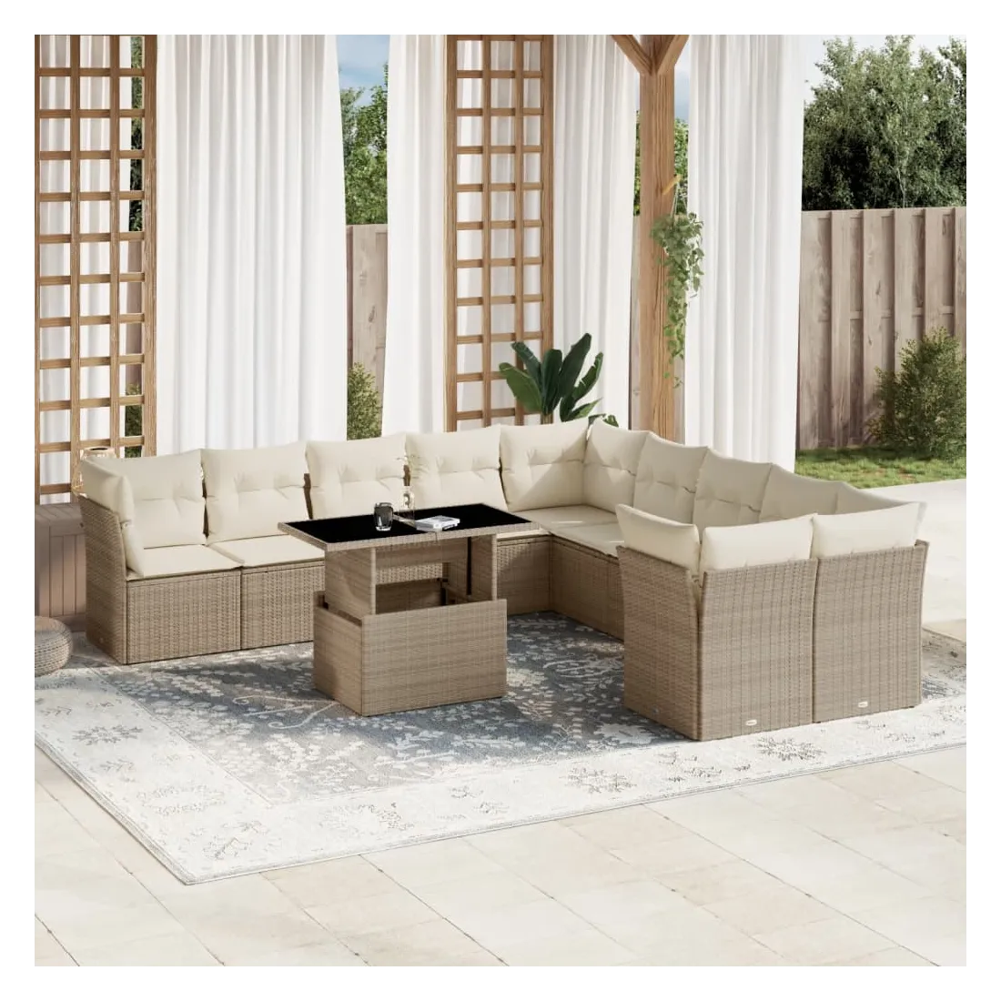 Salon de jardin 11 pcs avec coussins beige résine tressée