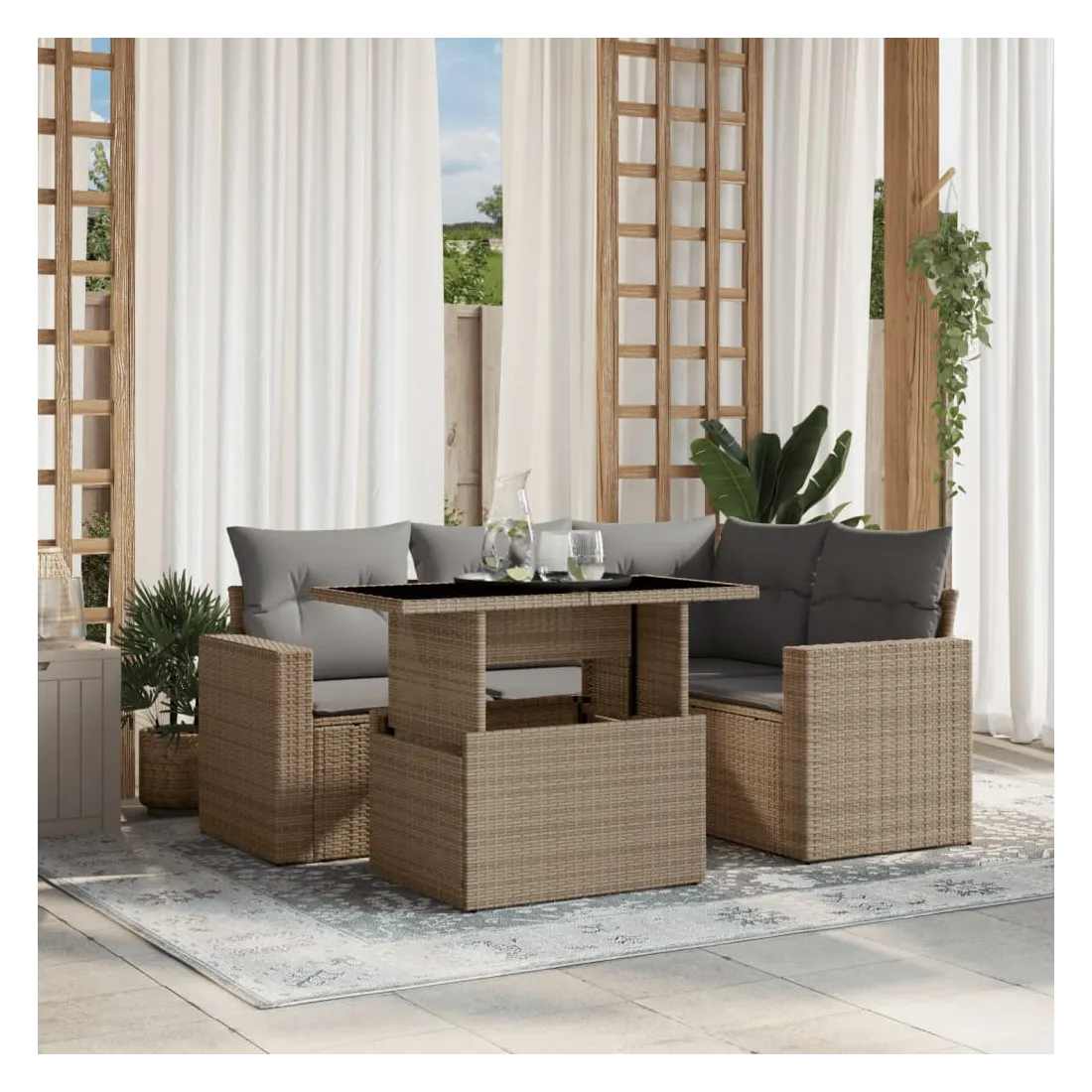 Cet ensemble de canapés de jardin est le complément parfait de votre arrière-cour, terrasse ou patio, offrant un espace confortable et accueillant pour discuter avec la famille et les amis ou simplement se détendre et profiter de l'extérieur. Matériau durable : la résine tressée, également connue sous le nom de poly rotin, est un matériau synthétique solide et nécessitant peu d'entretien qui ressemble au rotin naturel. Il est léger, facile à nettoyer et couramment utilisé pour les meubles d'extérieur en raison de sa durabilité et de ses propriétés de résistance aux intempéries.Dessus de table réglable : le dessus de table peut être soulevé pour rendre la table plus haute, ce qui transforme la table d'extérieur d'une table basse à une table de salle à manger. Elle est parfaite pour recevoir des invités ou prendre des repas à l'extérieur.Expérience d'assise confortable : ce mobilier d'extérieur, doté de coussins épais, offre une expérience d'assise confortable.Housse amovible et lavable : ces coussins de siège sont dotés de housses amovibles pour un lavage et un entretien faciles.Conception modulaire : cet ensemble de meubles d'extérieur a une conception modulaire, ce qui le rend complètement flexible et facile à déplacer, afin que vous puissiez créer un agencement de meubles d'extérieur personnalisé. Bon à savoir :Pour que vos meubles d'extérieur restent beaux, nous vous recommandons de les protéger avec une housse imperméable.