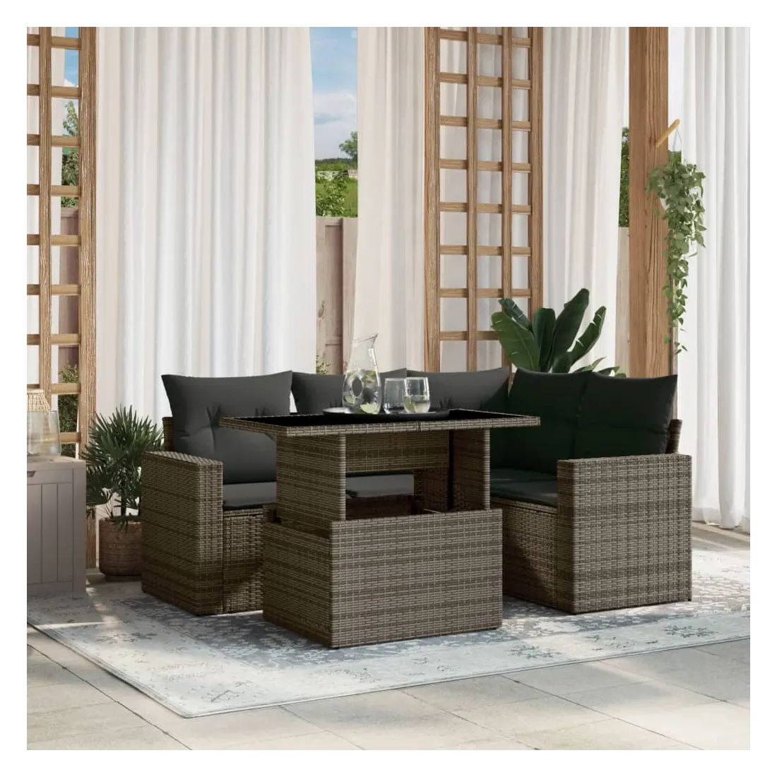 Cet ensemble de canapés de jardin est le complément parfait de votre arrière-cour, terrasse ou patio, offrant un espace confortable et accueillant pour discuter avec la famille et les amis ou simplement se détendre et profiter de l'extérieur. Matériau durable : la résine tressée, également connue sous le nom de poly rotin, est un matériau synthétique solide et nécessitant peu d'entretien qui ressemble au rotin naturel. Il est léger, facile à nettoyer et couramment utilisé pour les meubles d'extérieur en raison de sa durabilité et de ses propriétés de résistance aux intempéries.Dessus de table réglable : le dessus de table peut être soulevé pour rendre la table plus haute, ce qui transforme la table d'extérieur d'une table basse à une table de salle à manger. Elle est parfaite pour recevoir des invités ou prendre des repas à l'extérieur.Expérience d'assise confortable : ce mobilier d'extérieur, doté de coussins épais, offre une expérience d'assise confortable.Housse amovible et lavable : ces coussins de siège sont dotés de housses amovibles pour un lavage et un entretien faciles.Conception modulaire : cet ensemble de meubles d'extérieur a une conception modulaire, ce qui le rend complètement flexible et facile à déplacer, afin que vous puissiez créer un agencement de meubles d'extérieur personnalisé. Bon à savoir :Pour que vos meubles d'extérieur restent beaux, nous vous recommandons de les protéger avec une housse imperméable.