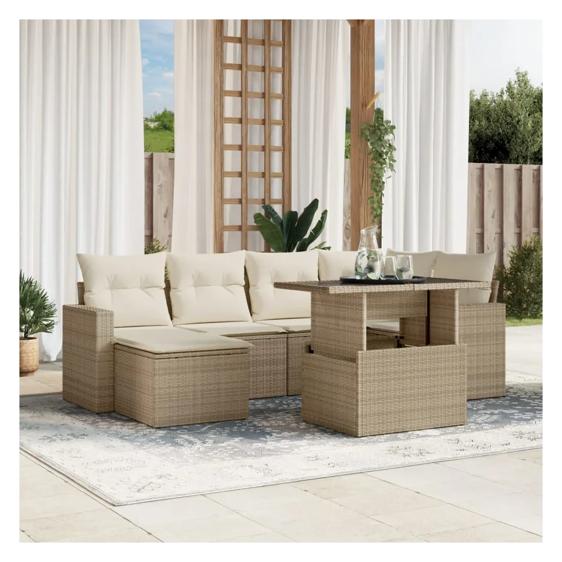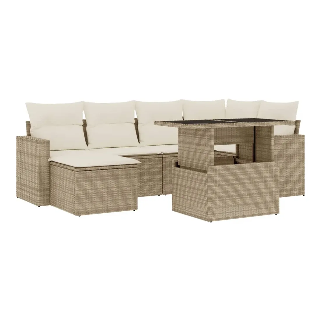 Cet ensemble de canapés de jardin est le complément parfait de votre arrière-cour, terrasse ou patio, offrant un espace confortable et accueillant pour discuter avec la famille et les amis ou simplement se détendre et profiter de l'extérieur. Matériau durable : la résine tressée, également connue sous le nom de poly rotin, est un matériau synthétique solide et nécessitant peu d'entretien qui ressemble au rotin naturel. Il est léger, facile à nettoyer et couramment utilisé pour les meubles d'extérieur en raison de sa durabilité et de ses propriétés de résistance aux intempéries.Dessus de table réglable : le dessus de table peut être soulevé pour rendre la table plus haute, ce qui transforme la table d'extérieur d'une table basse à une table de salle à manger. Elle est parfaite pour recevoir des invités ou prendre des repas à l'extérieur.Expérience d'assise confortable : ce mobilier d'extérieur, doté de coussins épais, offre une expérience d'assise confortable.Housse amovible et lavable : ces coussins de siège sont dotés de housses amovibles pour un lavage et un entretien faciles.Conception modulaire : cet ensemble de meubles d'extérieur a une conception modulaire, ce qui le rend complètement flexible et facile à déplacer, afin que vous puissiez créer un agencement de meubles d'extérieur personnalisé. Bon à savoir :Pour que vos meubles d'extérieur restent beaux, nous vous recommandons de les protéger avec une housse imperméable.