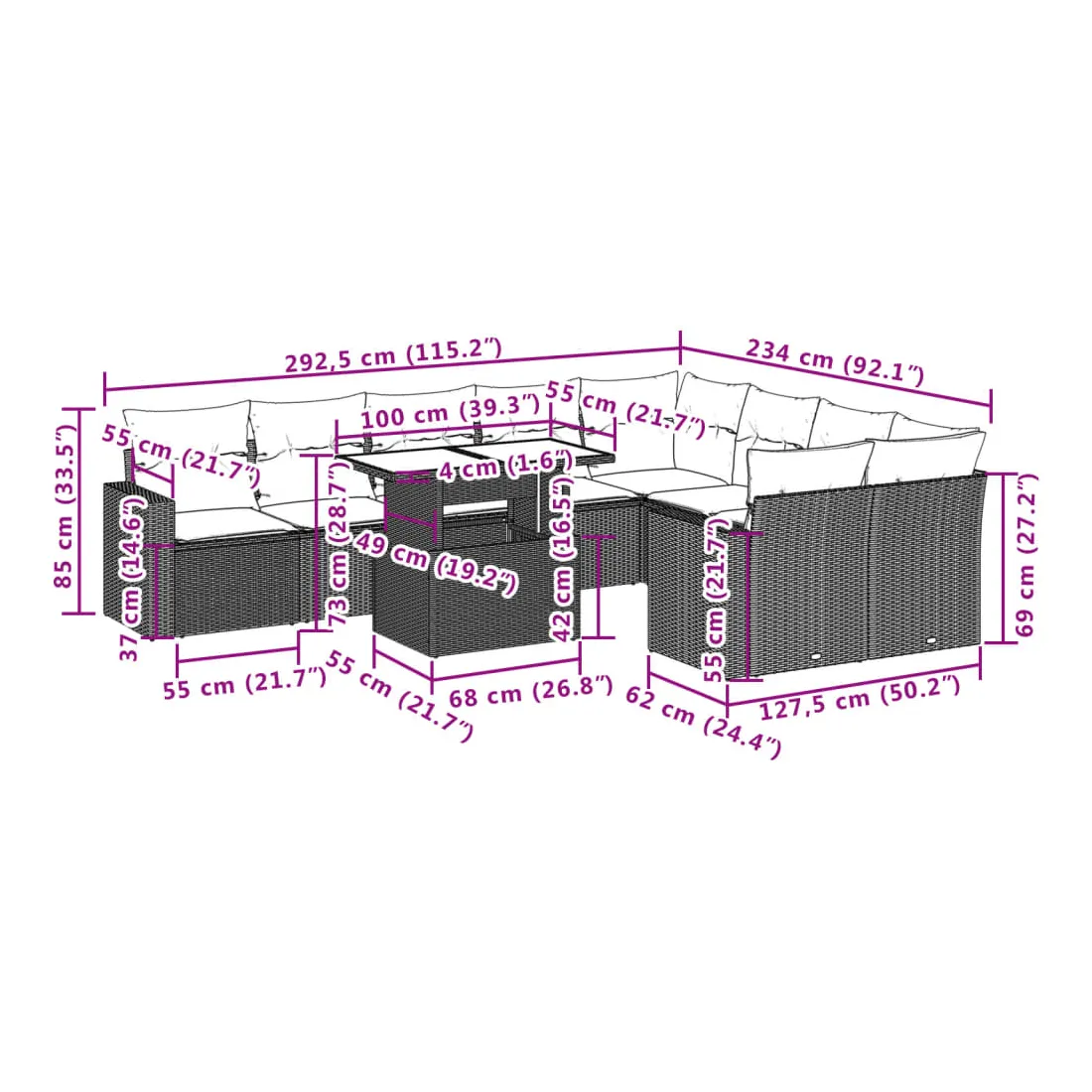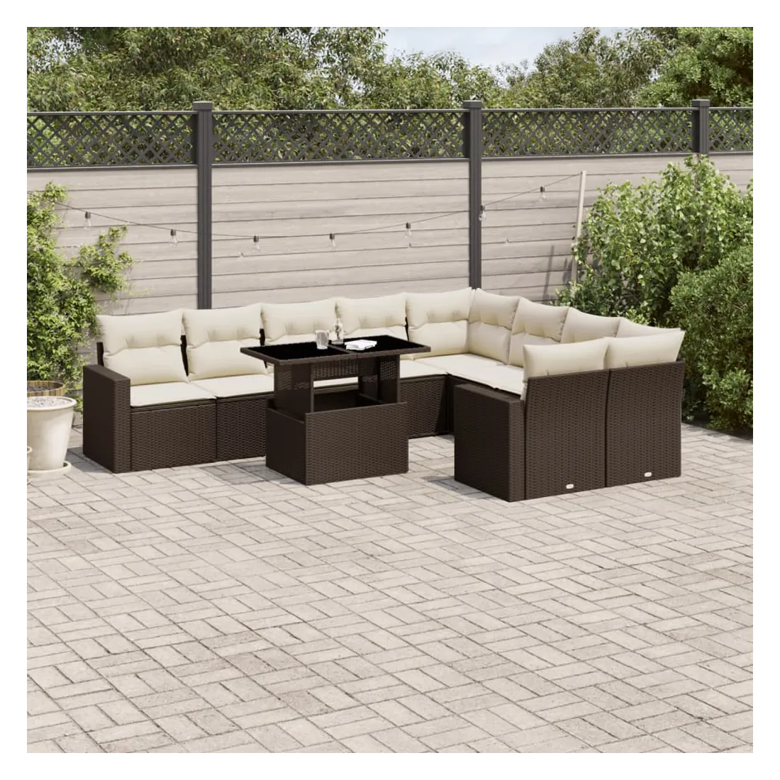 Cet ensemble de canapés de jardin est le complément parfait de votre arrière-cour, terrasse ou patio, offrant un espace confortable et accueillant pour discuter avec la famille et les amis ou simplement se détendre et profiter de l'extérieur. Matériau durable : la résine tressée, également connue sous le nom de poly rotin, est un matériau synthétique solide et nécessitant peu d'entretien qui ressemble au rotin naturel. Il est léger, facile à nettoyer et couramment utilisé pour les meubles d'extérieur en raison de sa durabilité et de ses propriétés de résistance aux intempéries.Dessus de table réglable : le dessus de table peut être soulevé pour rendre la table plus haute, ce qui transforme la table d'extérieur d'une table basse à une table de salle à manger. Elle est parfaite pour recevoir des invités ou prendre des repas à l'extérieur.Expérience d'assise confortable : ce mobilier d'extérieur, doté de coussins épais, offre une expérience d'assise confortable.Housse amovible et lavable : ces coussins de siège sont dotés de housses amovibles pour un lavage et un entretien faciles.Conception modulaire : cet ensemble de meubles d'extérieur a une conception modulaire, ce qui le rend complètement flexible et facile à déplacer, afin que vous puissiez créer un agencement de meubles d'extérieur personnalisé. Bon à savoir :Pour que vos meubles d'extérieur restent beaux, nous vous recommandons de les protéger avec une housse imperméable.