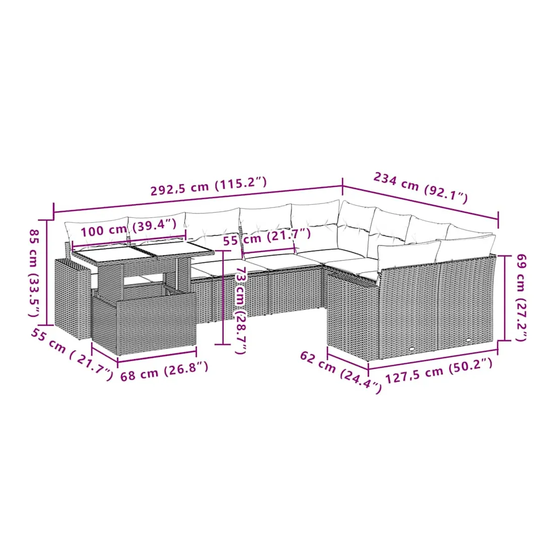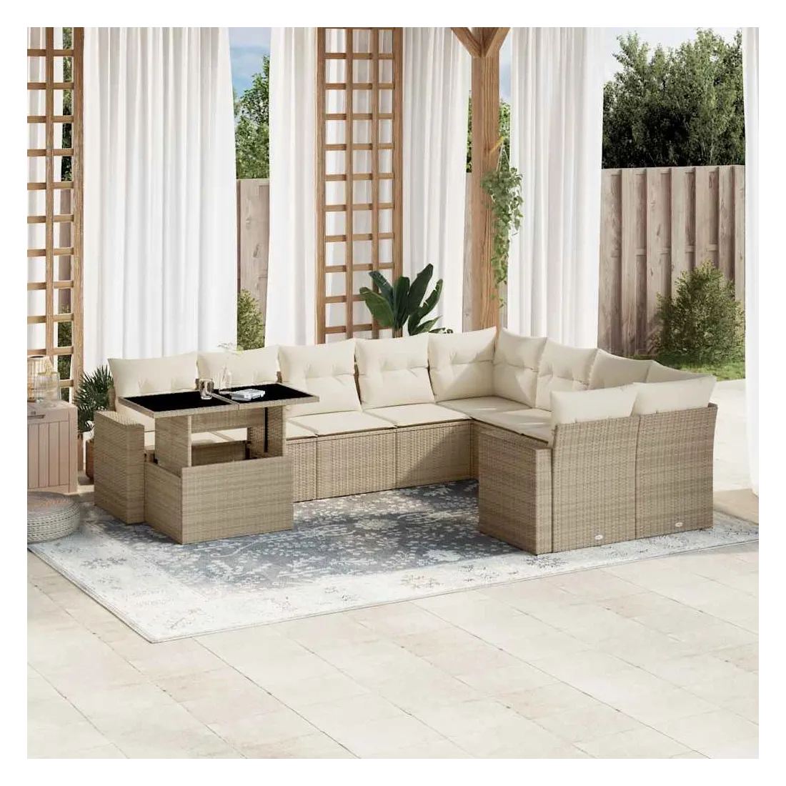 Cet ensemble de canapés de jardin est le complément parfait de votre arrière-cour, terrasse ou patio, offrant un espace confortable et accueillant pour discuter avec la famille et les amis ou simplement se détendre et profiter de l'extérieur. Matériau durable : la résine tressée, également connue sous le nom de poly rotin, est un matériau synthétique solide et nécessitant peu d'entretien qui ressemble au rotin naturel. Il est léger, facile à nettoyer et couramment utilisé pour les meubles d'extérieur en raison de sa durabilité et de ses propriétés de résistance aux intempéries.Dessus de table réglable : le dessus de table peut être soulevé pour rendre la table plus haute, ce qui transforme la table d'extérieur d'une table basse à une table de salle à manger. Elle est parfaite pour recevoir des invités ou prendre des repas à l'extérieur.Expérience d'assise confortable : ce mobilier d'extérieur, doté de coussins épais, offre une expérience d'assise confortable.Housse amovible et lavable : ces coussins de siège sont dotés de housses amovibles pour un lavage et un entretien faciles.Conception modulaire : cet ensemble de meubles d'extérieur a une conception modulaire, ce qui le rend complètement flexible et facile à déplacer, afin que vous puissiez créer un agencement de meubles d'extérieur personnalisé. Bon à savoir :Pour que vos meubles d'extérieur restent beaux, nous vous recommandons de les protéger avec une housse imperméable.