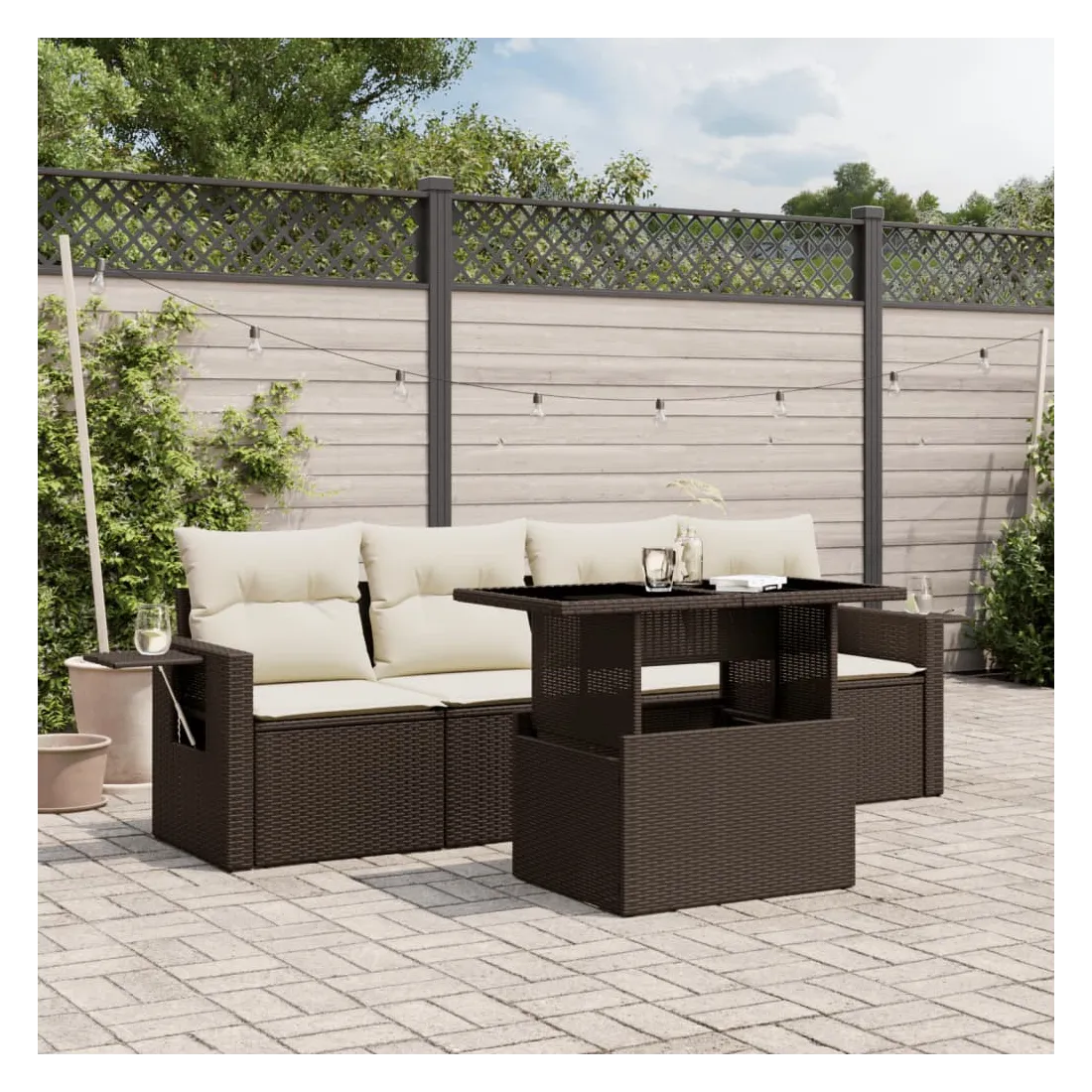 Cet ensemble de canapés de jardin est le complément parfait de votre arrière-cour, terrasse ou patio, offrant un espace confortable et accueillant pour discuter avec la famille et les amis ou simplement se détendre et profiter de l'extérieur. Matériau durable : la résine tressée, également connue sous le nom de poly rotin, est un matériau synthétique solide et nécessitant peu d'entretien qui ressemble au rotin naturel. Il est léger, facile à nettoyer et couramment utilisé pour les meubles d'extérieur en raison de sa durabilité et de ses propriétés de résistance aux intempéries.Dessus de table réglable : le dessus de table peut être soulevé pour rendre la table plus haute, ce qui transforme la table d'extérieur d'une table basse à une table de salle à manger. Elle est parfaite pour recevoir des invités ou prendre des repas à l'extérieur.Table d'appoint pratique : ce mobilier d'extérieur comprend des tables d'appoint pliables avec un ressort à gaz sur les accoudoirs, offrant des endroits pratiques pour garder vos essentiels à portée de main. Expérience d'assise confortable : ce mobilier d'extérieur, doté de coussins épais, offre une expérience d'assise confortable.Conception modulaire : cet ensemble de meubles d'extérieur a une conception modulaire, ce qui le rend complètement flexible et facile à déplacer, afin que vous puissiez créer un agencement de meubles d'extérieur personnalisé. Bon à savoir :Pour que vos meubles d'extérieur restent beaux, nous vous recommandons de les protéger avec une housse imperméable.
