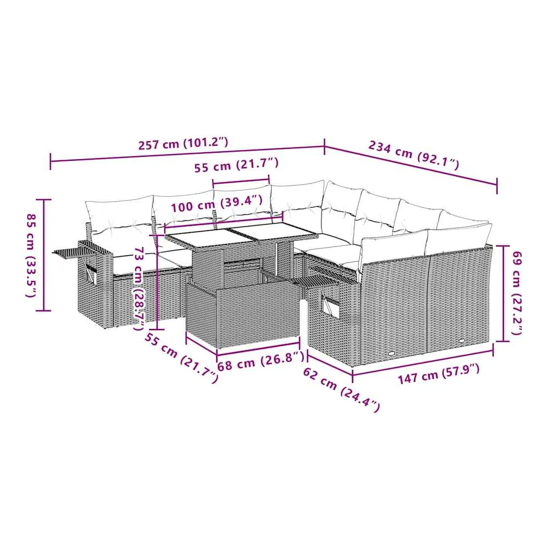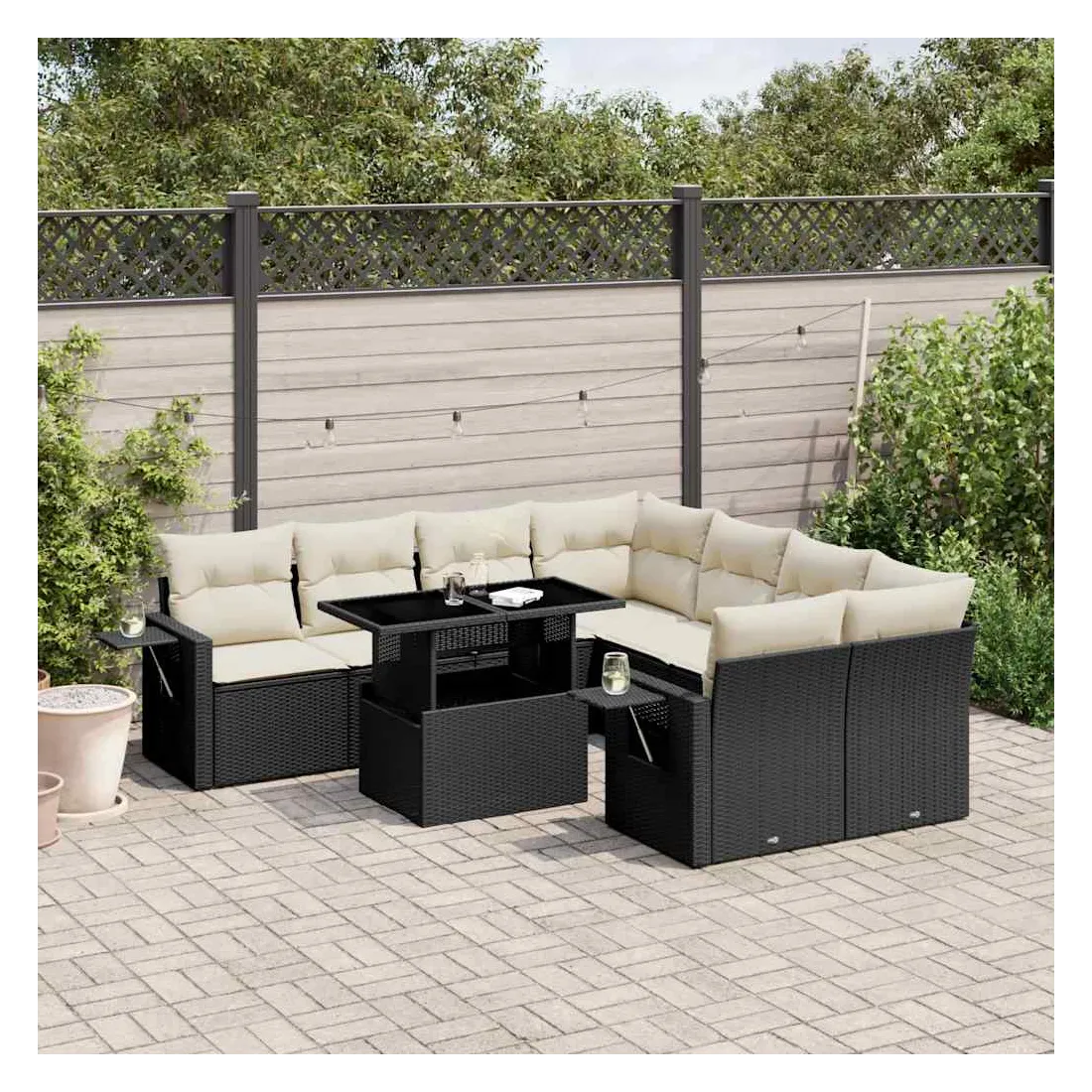 Cet ensemble de canapés de jardin est le complément parfait de votre arrière-cour, terrasse ou patio, offrant un espace confortable et accueillant pour discuter avec la famille et les amis ou simplement se détendre et profiter de l'extérieur. Matériau durable : la résine tressée, également connue sous le nom de poly rotin, est un matériau synthétique solide et nécessitant peu d'entretien qui ressemble au rotin naturel. Il est léger, facile à nettoyer et couramment utilisé pour les meubles d'extérieur en raison de sa durabilité et de ses propriétés de résistance aux intempéries.Dessus de table réglable : le dessus de table peut être soulevé pour rendre la table plus haute, ce qui transforme la table d'extérieur d'une table basse à une table de salle à manger. Elle est parfaite pour recevoir des invités ou prendre des repas à l'extérieur.Table d'appoint pratique : ce mobilier d'extérieur comprend des tables d'appoint pliables avec un ressort à gaz sur les accoudoirs, offrant des endroits pratiques pour garder vos essentiels à portée de main. Expérience d'assise confortable : ce mobilier d'extérieur, doté de coussins épais, offre une expérience d'assise confortable.Conception modulaire : cet ensemble de meubles d'extérieur a une conception modulaire, ce qui le rend complètement flexible et facile à déplacer, afin que vous puissiez créer un agencement de meubles d'extérieur personnalisé. Bon à savoir :Pour que vos meubles d'extérieur restent beaux, nous vous recommandons de les protéger avec une housse imperméable.