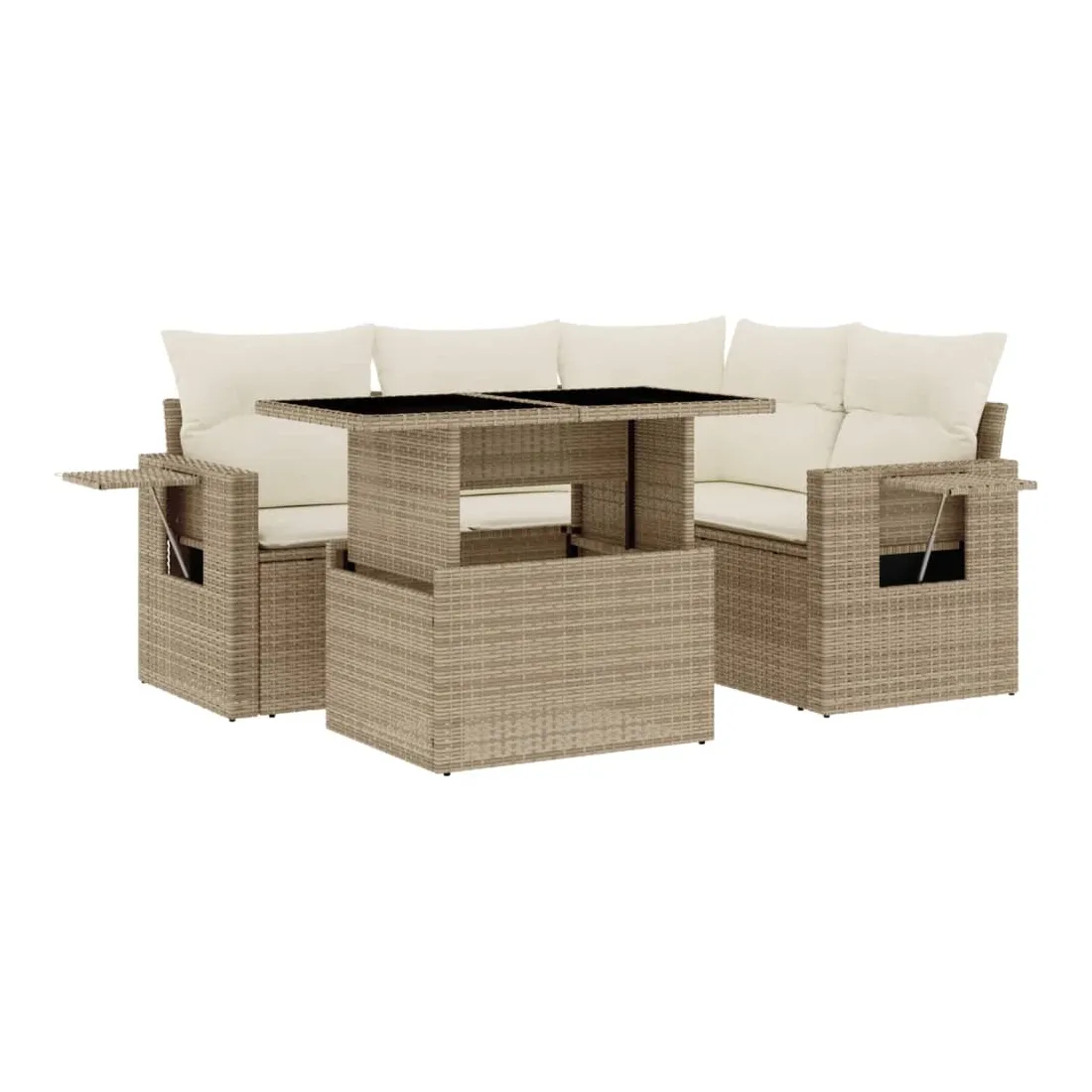 Cet ensemble de canapés de jardin est le complément parfait de votre arrière-cour, terrasse ou patio, offrant un espace confortable et accueillant pour discuter avec la famille et les amis ou simplement se détendre et profiter de l'extérieur. Matériau durable : la résine tressée, également connue sous le nom de poly rotin, est un matériau synthétique solide et nécessitant peu d'entretien qui ressemble au rotin naturel. Il est léger, facile à nettoyer et couramment utilisé pour les meubles d'extérieur en raison de sa durabilité et de ses propriétés de résistance aux intempéries.Dessus de table réglable : le dessus de table peut être soulevé pour rendre la table plus haute, ce qui transforme la table d'extérieur d'une table basse à une table de salle à manger. Elle est parfaite pour recevoir des invités ou prendre des repas à l'extérieur.Table d'appoint pratique : ce mobilier d'extérieur comprend des tables d'appoint pliables avec un ressort à gaz sur les accoudoirs, offrant des endroits pratiques pour garder vos essentiels à portée de main. Expérience d'assise confortable : ce mobilier d'extérieur, doté de coussins épais, offre une expérience d'assise confortable.Conception modulaire : cet ensemble de meubles d'extérieur a une conception modulaire, ce qui le rend complètement flexible et facile à déplacer, afin que vous puissiez créer un agencement de meubles d'extérieur personnalisé. Bon à savoir :Pour que vos meubles d'extérieur restent beaux, nous vous recommandons de les protéger avec une housse imperméable.
