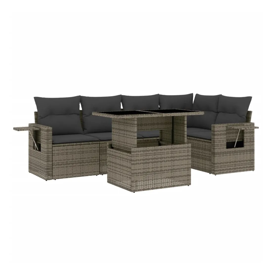 Salon de jardin 6 pcs avec coussins gris résine tressée