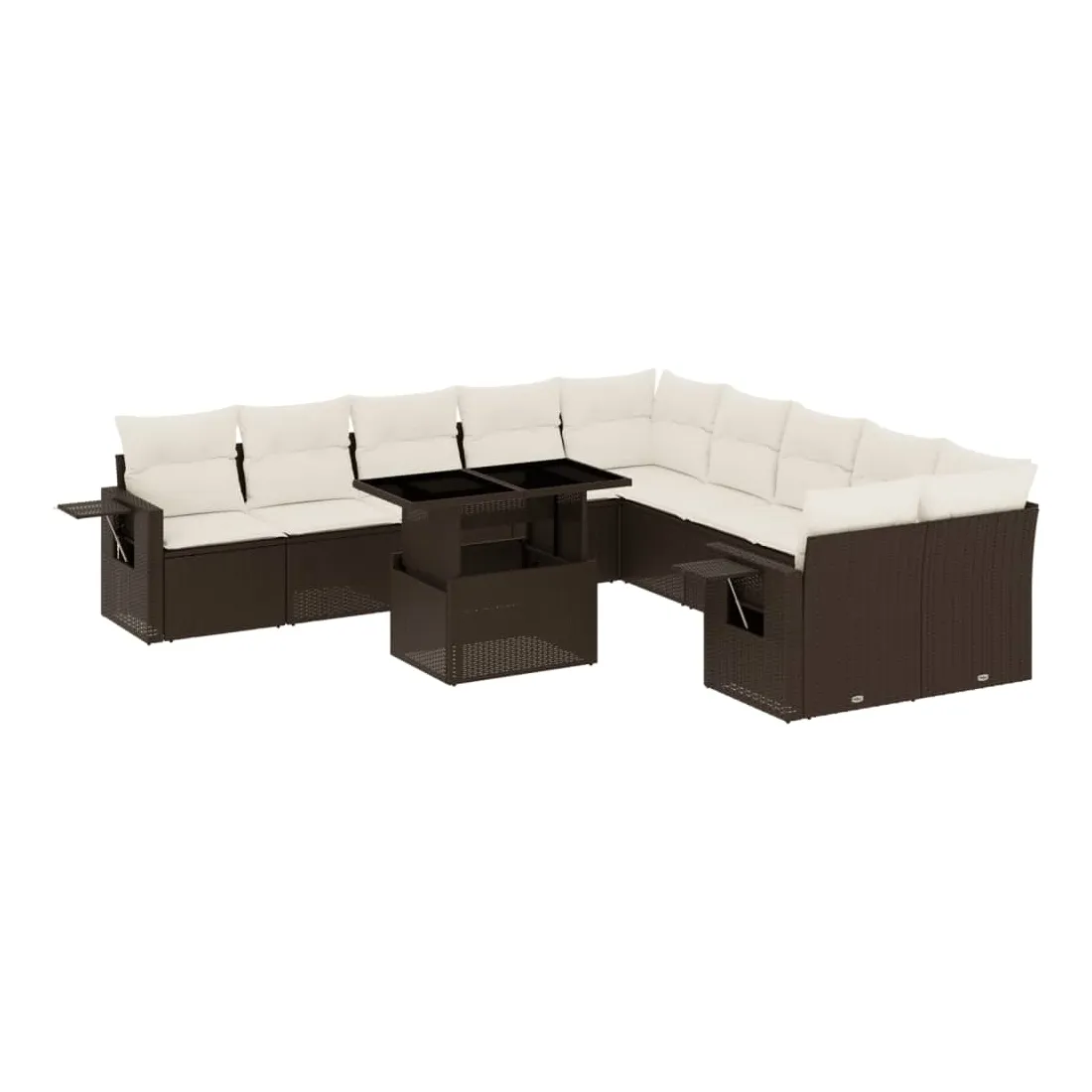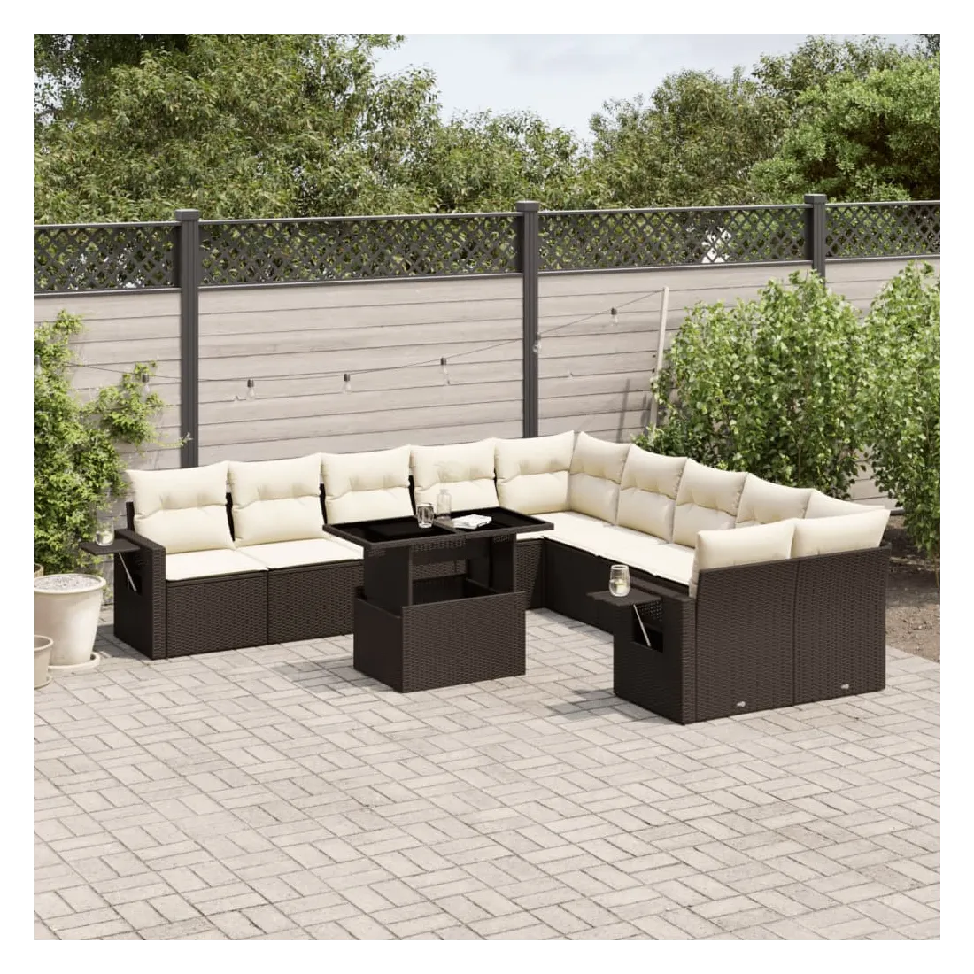 Cet ensemble de canapés de jardin est le complément parfait de votre arrière-cour, terrasse ou patio, offrant un espace confortable et accueillant pour discuter avec la famille et les amis ou simplement se détendre et profiter de l'extérieur. Matériau durable : la résine tressée, également connue sous le nom de poly rotin, est un matériau synthétique solide et nécessitant peu d'entretien qui ressemble au rotin naturel. Il est léger, facile à nettoyer et couramment utilisé pour les meubles d'extérieur en raison de sa durabilité et de ses propriétés de résistance aux intempéries.Dessus de table réglable : le dessus de table peut être soulevé pour rendre la table plus haute, ce qui transforme la table d'extérieur d'une table basse à une table de salle à manger. Elle est parfaite pour recevoir des invités ou prendre des repas à l'extérieur.Table d'appoint pratique : ce mobilier d'extérieur comprend des tables d'appoint pliables avec un ressort à gaz sur les accoudoirs, offrant des endroits pratiques pour garder vos essentiels à portée de main. Expérience d'assise confortable : ce mobilier d'extérieur, doté de coussins épais, offre une expérience d'assise confortable.Conception modulaire : cet ensemble de meubles d'extérieur a une conception modulaire, ce qui le rend complètement flexible et facile à déplacer, afin que vous puissiez créer un agencement de meubles d'extérieur personnalisé. Bon à savoir :Pour que vos meubles d'extérieur restent beaux, nous vous recommandons de les protéger avec une housse imperméable.