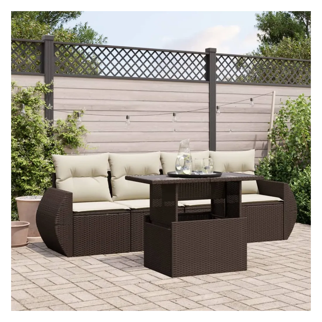 Cet ensemble de canapés de jardin est le complément parfait de votre arrière-cour, terrasse ou patio, offrant un espace confortable et accueillant pour discuter avec la famille et les amis ou simplement se détendre et profiter de l'extérieur. Matériau durable : la résine tressée, également connue sous le nom de poly rotin, est un matériau synthétique solide et nécessitant peu d'entretien qui ressemble au rotin naturel. Elle est légère, facile à nettoyer et couramment utilisée pour les meubles d'extérieur en raison de sa durabilité et de ses propriétés de résistance aux intempéries.Dessus de table réglable : le dessus de table peut être soulevé pour rendre la table plus haute, ce qui transforme la table d'extérieur d'une table basse à une table de salle à manger. Elle est parfaite pour recevoir des invités ou prendre des repas à l'extérieur.Expérience d'assise confortable : ce mobilier d'extérieur, doté de coussins épais, offre une expérience d'assise confortable.Housse amovible et lavable : ces coussins de siège sont dotés de housses amovibles pour un lavage et un entretien faciles.Conception modulaire : cet ensemble de meubles d'extérieur a une conception modulaire, ce qui le rend complètement flexible et facile à déplacer, afin que vous puissiez créer un agencement de meubles d'extérieur personnalisé. Bon à savoir :Pour que vos meubles d'extérieur restent beaux, nous vous recommandons de les protéger avec une housse imperméable.