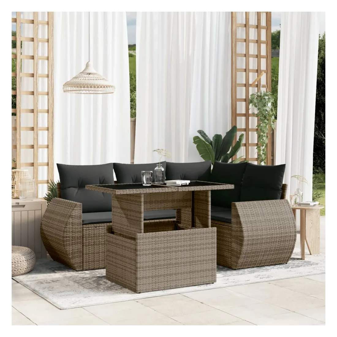 Cet ensemble de canapés de jardin est le complément parfait de votre arrière-cour, terrasse ou patio, offrant un espace confortable et accueillant pour discuter avec la famille et les amis ou simplement se détendre et profiter de l'extérieur. Matériau durable : la résine tressée, également connue sous le nom de poly rotin, est un matériau synthétique solide et nécessitant peu d'entretien qui ressemble au rotin naturel. Il est léger, facile à nettoyer et couramment utilisé pour les meubles d'extérieur en raison de sa durabilité et de ses propriétés de résistance aux intempéries.Dessus de table réglable : le dessus de table peut être soulevé pour rendre la table plus haute, ce qui transforme la table d'extérieur d'une table basse à une table de salle à manger. Elle est parfaite pour recevoir des invités ou prendre des repas à l'extérieur.Expérience d'assise confortable : ce mobilier d'extérieur, doté de coussins épais, offre une expérience d'assise confortable.Housse amovible et lavable : ces coussins de siège sont dotés de housses amovibles pour un lavage et un entretien faciles.Conception modulaire : cet ensemble de meubles d'extérieur a une conception modulaire, ce qui le rend complètement flexible et facile à déplacer, afin que vous puissiez créer un agencement de meubles d'extérieur personnalisé. Bon à savoir :Pour que vos meubles d'extérieur restent beaux, nous vous recommandons de les protéger avec une housse imperméable.