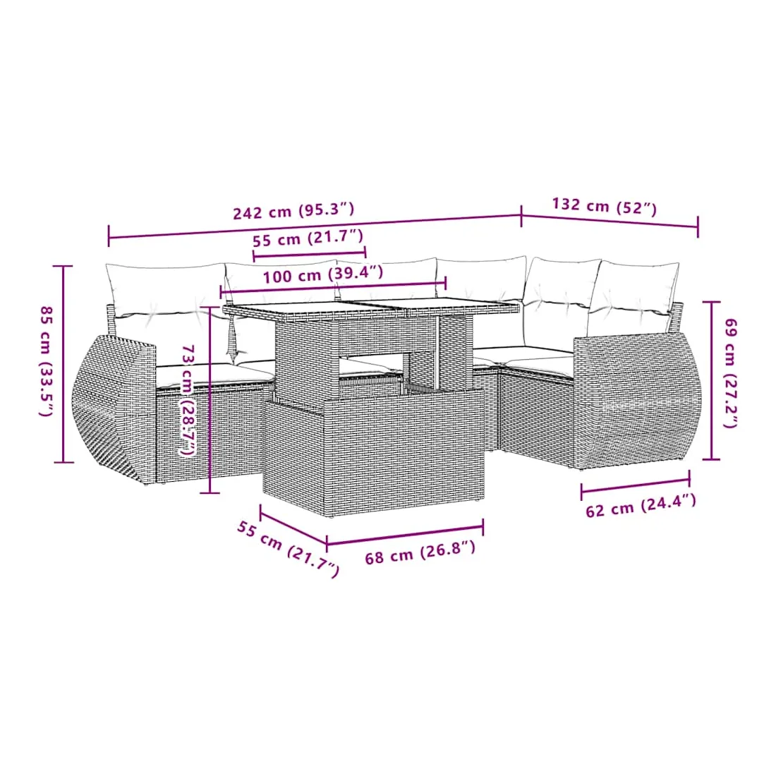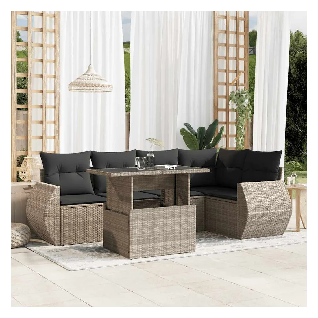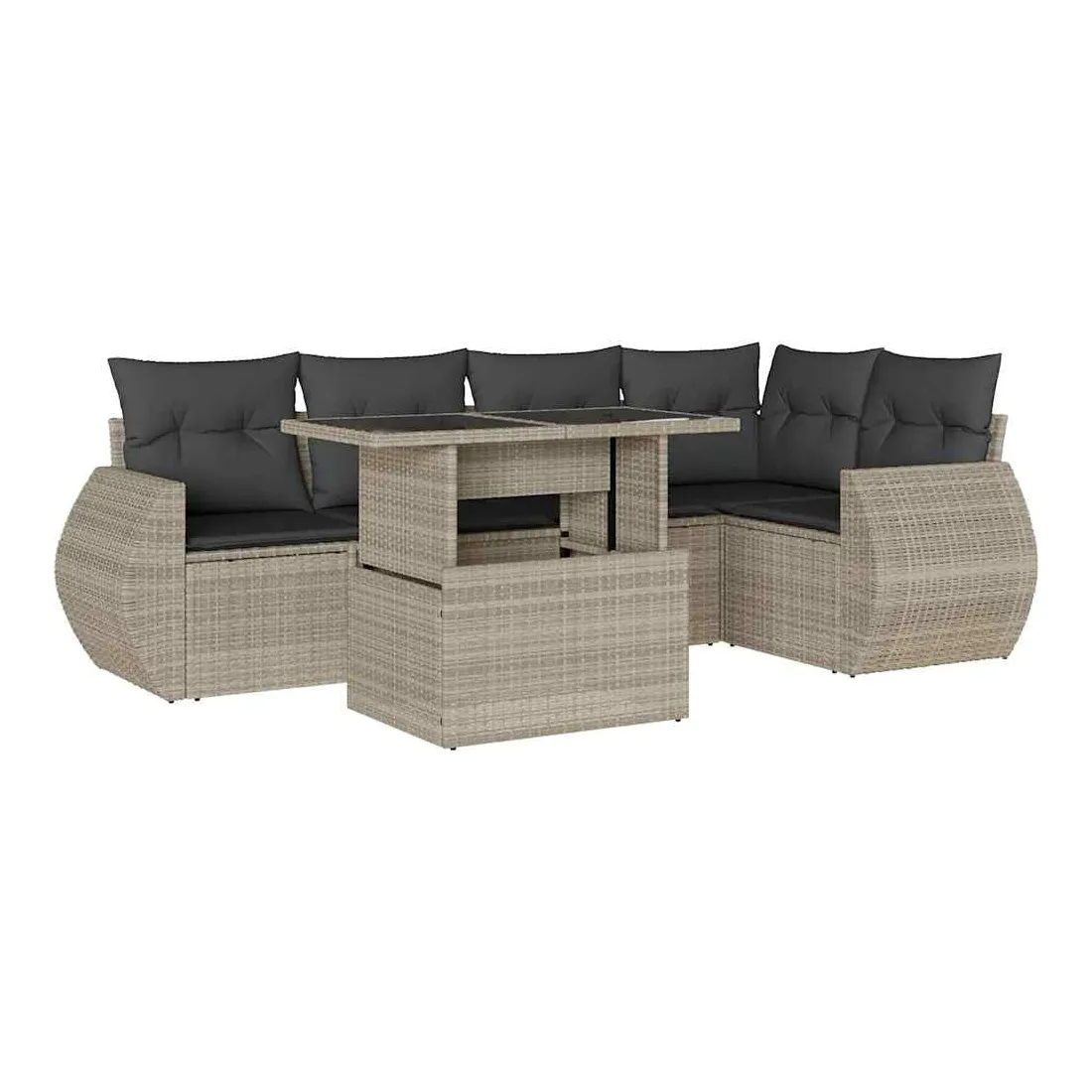 Cet ensemble de canapés de jardin est le complément parfait de votre arrière-cour, terrasse ou patio, offrant un espace confortable et accueillant pour discuter avec la famille et les amis ou simplement se détendre et profiter de l'extérieur. Matériau durable : la résine tressée, également connue sous le nom de poly rotin, est un matériau synthétique solide et nécessitant peu d'entretien qui ressemble au rotin naturel. Elle est légère, facile à nettoyer et couramment utilisée pour les meubles d'extérieur en raison de sa durabilité et de ses propriétés de résistance aux intempéries.Dessus de table réglable : le dessus de table peut être soulevé pour rendre la table plus haute, ce qui transforme la table d'extérieur d'une table basse à une table de salle à manger. Elle est parfaite pour recevoir des invités ou prendre des repas à l'extérieur.Expérience d'assise confortable : ce mobilier d'extérieur, doté de coussins épais, offre une expérience d'assise confortable.Housse amovible et lavable : ces coussins de siège sont dotés de housses amovibles pour un lavage et un entretien faciles.Conception modulaire : cet ensemble de meubles d'extérieur a une conception modulaire, ce qui le rend complètement flexible et facile à déplacer, afin que vous puissiez créer un agencement de meubles d'extérieur personnalisé. Bon à savoir :Pour que vos meubles d'extérieur restent beaux, nous vous recommandons de les protéger avec une housse imperméable.