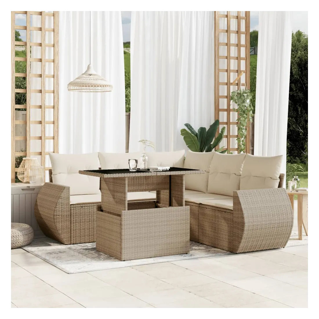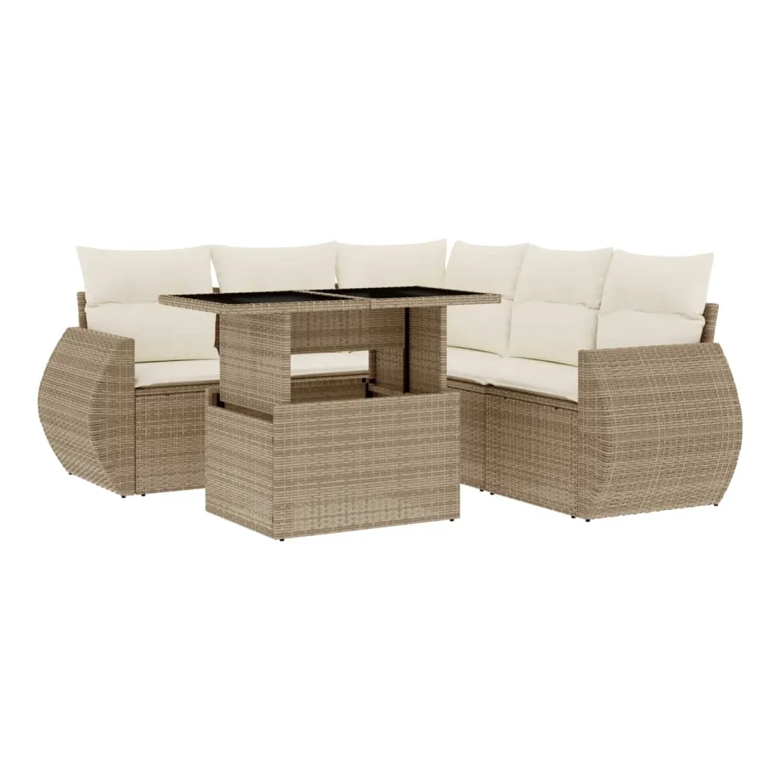 Salon de jardin avec coussins 6 pcs beige résine tressée