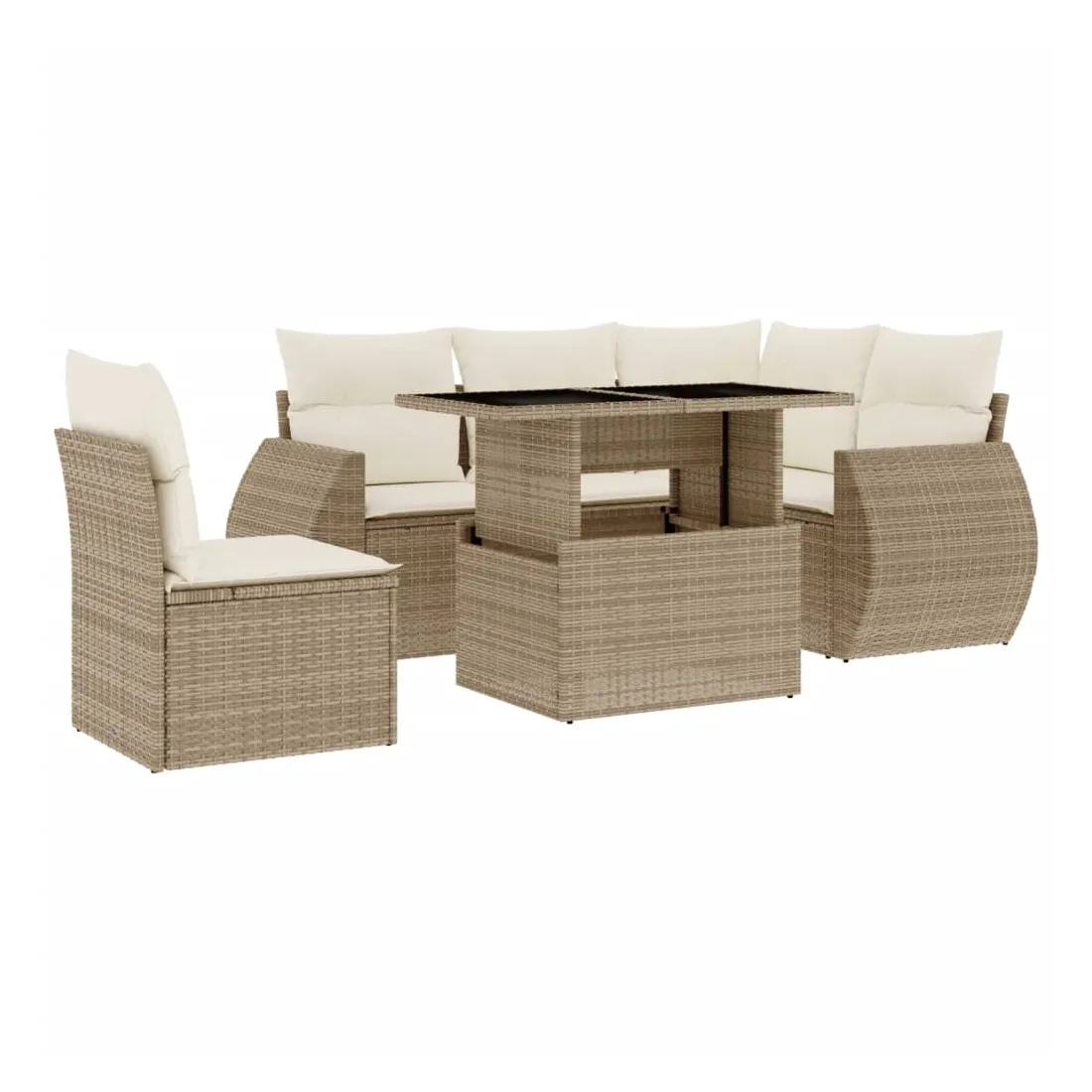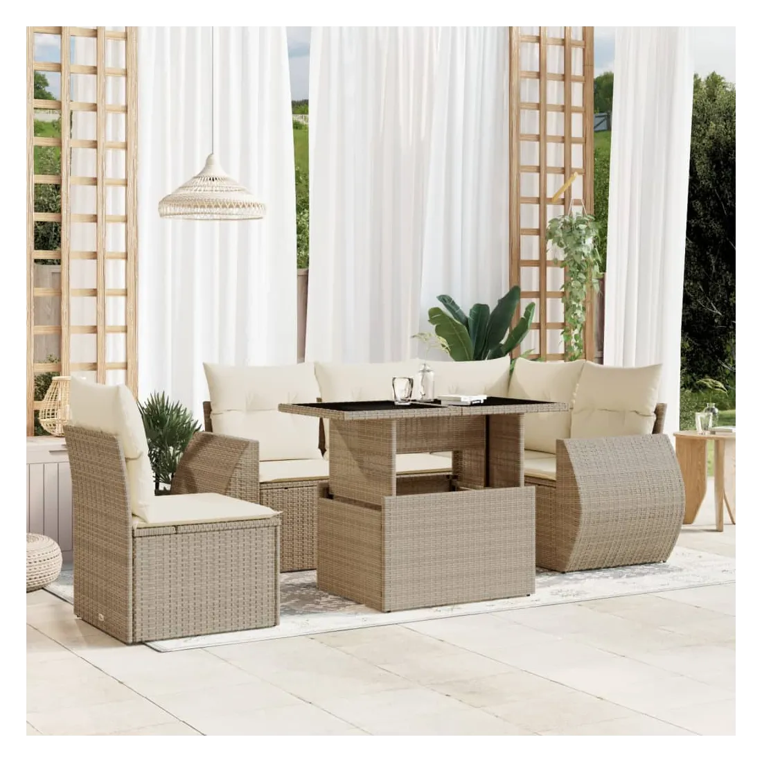 Cet ensemble de canapés de jardin est le complément parfait de votre arrière-cour, terrasse ou patio, offrant un espace confortable et accueillant pour discuter avec la famille et les amis ou simplement se détendre et profiter de l'extérieur. Matériau durable : la résine tressée, également connue sous le nom de poly rotin, est un matériau synthétique solide et nécessitant peu d'entretien qui ressemble au rotin naturel. Il est léger, facile à nettoyer et couramment utilisé pour les meubles d'extérieur en raison de sa durabilité et de ses propriétés de résistance aux intempéries.Dessus de table réglable : le dessus de table peut être soulevé pour rendre la table plus haute, ce qui transforme la table d'extérieur d'une table basse à une table de salle à manger. Elle est parfaite pour recevoir des invités ou prendre des repas à l'extérieur.Expérience d'assise confortable : ce mobilier d'extérieur, doté de coussins épais, offre une expérience d'assise confortable.Housse amovible et lavable : ces coussins de siège sont dotés de housses amovibles pour un lavage et un entretien faciles.Conception modulaire : cet ensemble de meubles d'extérieur a une conception modulaire, ce qui le rend complètement flexible et facile à déplacer, afin que vous puissiez créer un agencement de meubles d'extérieur personnalisé. Bon à savoir :Pour que vos meubles d'extérieur restent beaux, nous vous recommandons de les protéger avec une housse imperméable.