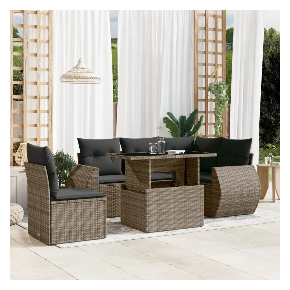 Cet ensemble de canapés de jardin est le complément parfait de votre arrière-cour, terrasse ou patio, offrant un espace confortable et accueillant pour discuter avec la famille et les amis ou simplement se détendre et profiter de l'extérieur. Matériau durable : la résine tressée, également connue sous le nom de poly rotin, est un matériau synthétique solide et nécessitant peu d'entretien qui ressemble au rotin naturel. Il est léger, facile à nettoyer et couramment utilisé pour les meubles d'extérieur en raison de sa durabilité et de ses propriétés de résistance aux intempéries.Dessus de table réglable : le dessus de table peut être soulevé pour rendre la table plus haute, ce qui transforme la table d'extérieur d'une table basse à une table de salle à manger. Elle est parfaite pour recevoir des invités ou prendre des repas à l'extérieur.Expérience d'assise confortable : ce mobilier d'extérieur, doté de coussins épais, offre une expérience d'assise confortable.Housse amovible et lavable : ces coussins de siège sont dotés de housses amovibles pour un lavage et un entretien faciles.Conception modulaire : cet ensemble de meubles d'extérieur a une conception modulaire, ce qui le rend complètement flexible et facile à déplacer, afin que vous puissiez créer un agencement de meubles d'extérieur personnalisé. Bon à savoir :Pour que vos meubles d'extérieur restent beaux, nous vous recommandons de les protéger avec une housse imperméable.