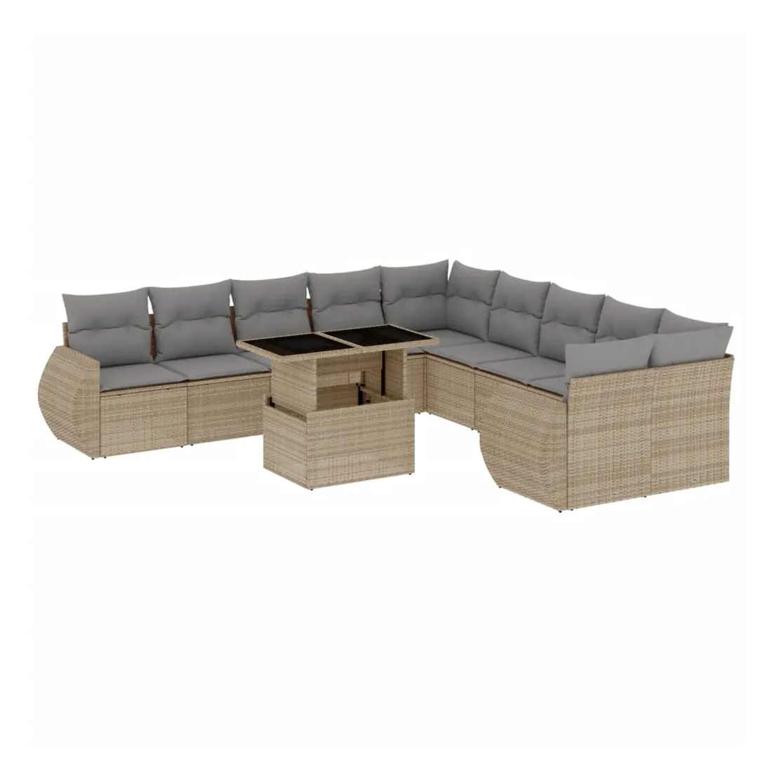 Salon de jardin 11 pcs avec coussins beige résine tressée