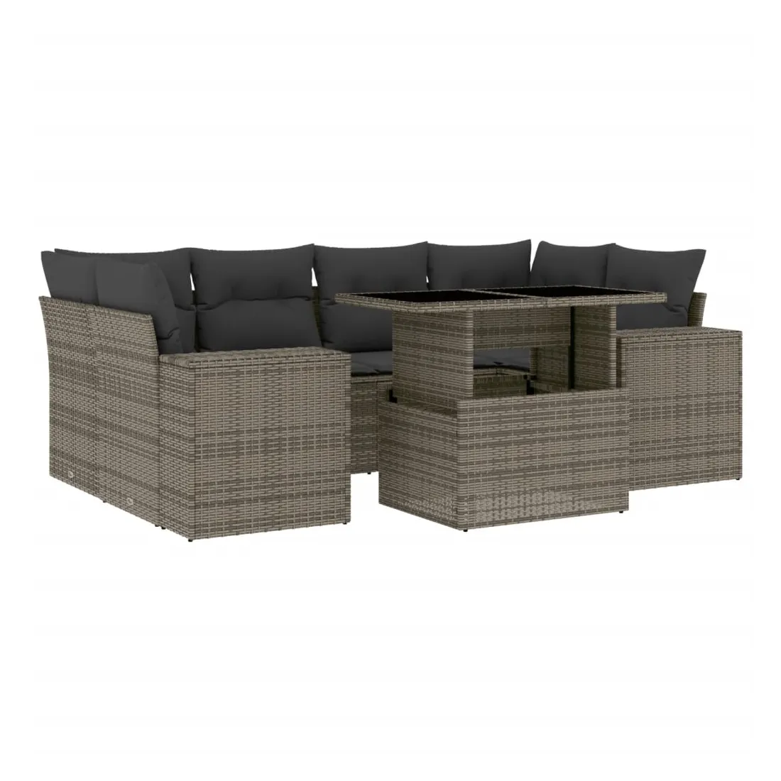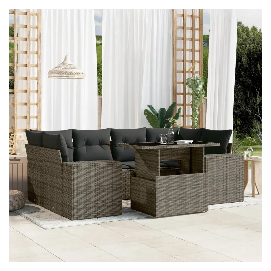 Cet ensemble de canapés de jardin est le complément parfait de votre arrière-cour, terrasse ou patio, offrant un espace confortable et accueillant pour discuter avec la famille et les amis ou simplement se détendre et profiter de l'extérieur. Matériau durable : la résine tressée, également connue sous le nom de poly rotin, est un matériau synthétique solide et nécessitant peu d'entretien qui ressemble au rotin naturel. Il est léger, facile à nettoyer et couramment utilisé pour les meubles d'extérieur en raison de sa durabilité et de ses propriétés de résistance aux intempéries.Dessus de table réglable : le dessus de table peut être soulevé pour rendre la table plus haute, ce qui transforme la table d'extérieur d'une table basse à une table de salle à manger. Elle est parfaite pour recevoir des invités ou prendre des repas à l'extérieur.Expérience d'assise confortable : ce mobilier d'extérieur, doté de coussins épais, offre une expérience d'assise confortable.Housse amovible et lavable : ces coussins de siège sont dotés de housses amovibles pour un lavage et un entretien faciles.Conception modulaire : cet ensemble de meubles d'extérieur a une conception modulaire, ce qui le rend complètement flexible et facile à déplacer, afin que vous puissiez créer un agencement de meubles d'extérieur personnalisé. Bon à savoir :Pour que vos meubles d'extérieur restent beaux, nous vous recommandons de les protéger avec une housse imperméable.
