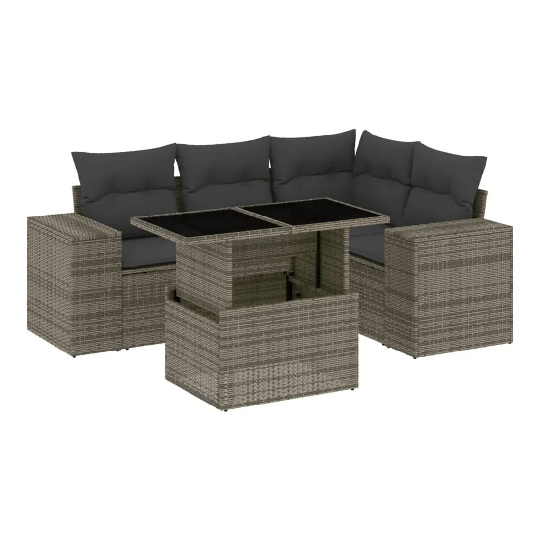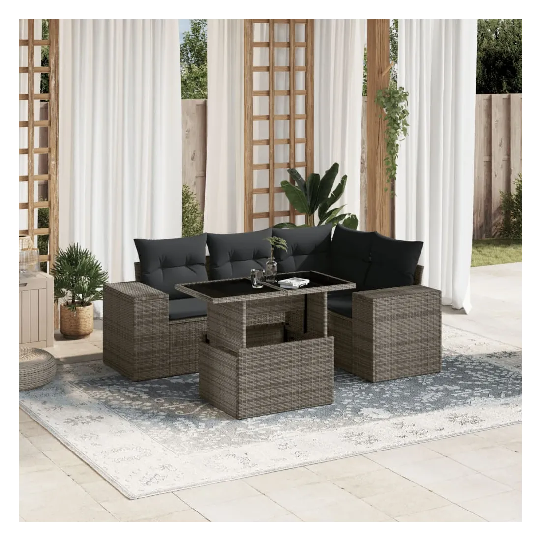 Cet ensemble de canapés de jardin est le complément parfait de votre arrière-cour, terrasse ou patio, offrant un espace confortable et accueillant pour discuter avec la famille et les amis ou simplement se détendre et profiter de l'extérieur. Matériau durable : la résine tressée, également connue sous le nom de poly rotin, est un matériau synthétique solide et nécessitant peu d'entretien qui ressemble au rotin naturel. Il est léger, facile à nettoyer et couramment utilisé pour les meubles d'extérieur en raison de sa durabilité et de ses propriétés de résistance aux intempéries.Dessus de table réglable : le dessus de table peut être soulevé pour rendre la table plus haute, ce qui transforme la table d'extérieur d'une table basse à une table de salle à manger. Elle est parfaite pour recevoir des invités ou prendre des repas à l'extérieur.Expérience d'assise confortable : ce mobilier d'extérieur, doté de coussins épais, offre une expérience d'assise confortable.Housse amovible et lavable : ces coussins de siège sont dotés de housses amovibles pour un lavage et un entretien faciles.Conception modulaire : cet ensemble de meubles d'extérieur a une conception modulaire, ce qui le rend complètement flexible et facile à déplacer, afin que vous puissiez créer un agencement de meubles d'extérieur personnalisé. Bon à savoir :Pour que vos meubles d'extérieur restent beaux, nous vous recommandons de les protéger avec une housse imperméable.