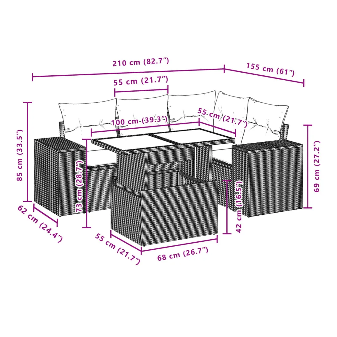 - Dimensions : 55 x 62 x 69 cm (l x P x H)