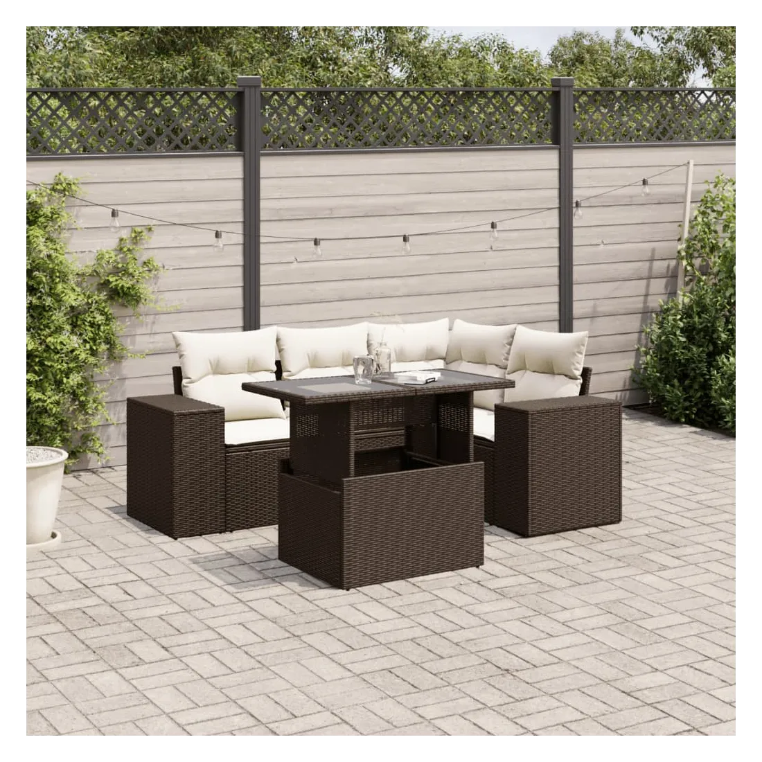 Cet ensemble de canapés de jardin est le complément parfait de votre arrière-cour, terrasse ou patio, offrant un espace confortable et accueillant pour discuter avec la famille et les amis ou simplement se détendre et profiter de l'extérieur. Matériau durable : la résine tressée, également connue sous le nom de poly rotin, est un matériau synthétique solide et nécessitant peu d'entretien qui ressemble au rotin naturel. Elle est légère, facile à nettoyer et couramment utilisée pour les meubles d'extérieur en raison de sa durabilité et de ses propriétés de résistance aux intempéries.Dessus de table réglable : le dessus de table peut être soulevé pour rendre la table plus haute, ce qui transforme la table d'extérieur d'une table basse à une table de salle à manger. Elle est parfaite pour recevoir des invités ou prendre des repas à l'extérieur.Expérience d'assise confortable : ce mobilier d'extérieur, doté de coussins épais, offre une expérience d'assise confortable.Housse amovible et lavable : ces coussins de siège sont dotés de housses amovibles pour un lavage et un entretien faciles.Conception modulaire : cet ensemble de meubles d'extérieur a une conception modulaire, ce qui le rend complètement flexible et facile à déplacer, afin que vous puissiez créer un agencement de meubles d'extérieur personnalisé. Bon à savoir :Pour que vos meubles d'extérieur restent beaux, nous vous recommandons de les protéger avec une housse imperméable.