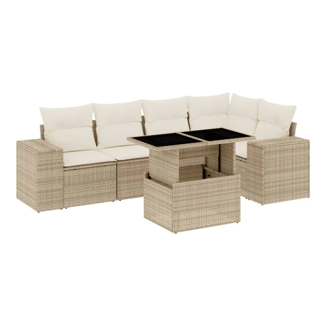 Salon de jardin avec coussins 6 pcs beige résine tressée
