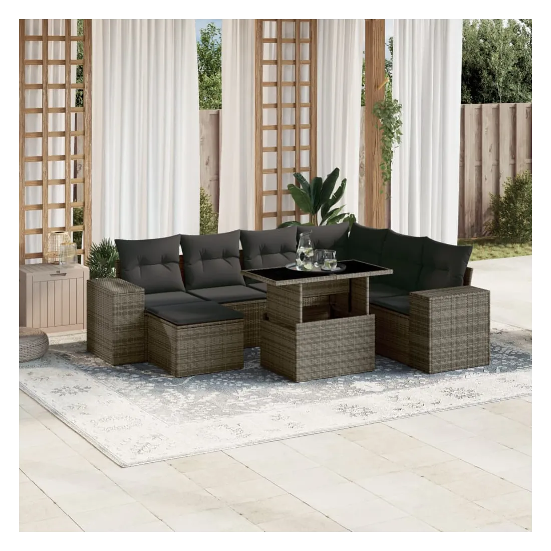 Cet ensemble de canapés de jardin est le complément parfait de votre arrière-cour, terrasse ou patio, offrant un espace confortable et accueillant pour discuter avec la famille et les amis ou simplement se détendre et profiter de l'extérieur. Matériau durable : la résine tressée, également connue sous le nom de poly rotin, est un matériau synthétique solide et nécessitant peu d'entretien qui ressemble au rotin naturel. Il est léger, facile à nettoyer et couramment utilisé pour les meubles d'extérieur en raison de sa durabilité et de ses propriétés de résistance aux intempéries.Dessus de table réglable : le dessus de table peut être soulevé pour rendre la table plus haute, ce qui transforme la table d'extérieur d'une table basse à une table de salle à manger. Elle est parfaite pour recevoir des invités ou prendre des repas à l'extérieur.Expérience d'assise confortable : ce mobilier d'extérieur, doté de coussins épais, offre une expérience d'assise confortable.Housse amovible et lavable : ces coussins de siège sont dotés de housses amovibles pour un lavage et un entretien faciles.Conception modulaire : cet ensemble de meubles d'extérieur a une conception modulaire, ce qui le rend complètement flexible et facile à déplacer, afin que vous puissiez créer un agencement de meubles d'extérieur personnalisé. Bon à savoir :Pour que vos meubles d'extérieur restent beaux, nous vous recommandons de les protéger avec une housse imperméable.