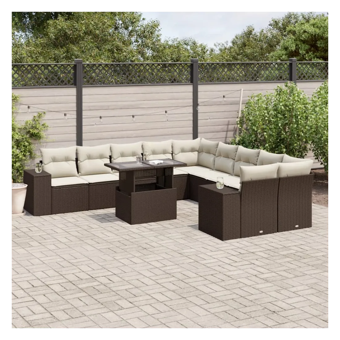 Cet ensemble de canapés de jardin est le complément parfait de votre arrière-cour, terrasse ou patio, offrant un espace confortable et accueillant pour discuter avec la famille et les amis ou simplement se détendre et profiter de l'extérieur. Matériau durable : la résine tressée, également connue sous le nom de poly rotin, est un matériau synthétique solide et nécessitant peu d'entretien qui ressemble au rotin naturel. Elle est légère, facile à nettoyer et couramment utilisée pour les meubles d'extérieur en raison de sa durabilité et de ses propriétés de résistance aux intempéries.Dessus de table réglable : le dessus de table peut être soulevé pour rendre la table plus haute, ce qui transforme la table d'extérieur d'une table basse à une table de salle à manger. Elle est parfaite pour recevoir des invités ou prendre des repas à l'extérieur.Expérience d'assise confortable : ce mobilier d'extérieur, doté de coussins épais, offre une expérience d'assise confortable.Housse amovible et lavable : ces coussins de siège sont dotés de housses amovibles pour un lavage et un entretien faciles.Conception modulaire : cet ensemble de meubles d'extérieur a une conception modulaire, ce qui le rend complètement flexible et facile à déplacer, afin que vous puissiez créer un agencement de meubles d'extérieur personnalisé. Bon à savoir :Pour que vos meubles d'extérieur restent beaux, nous vous recommandons de les protéger avec une housse imperméable.