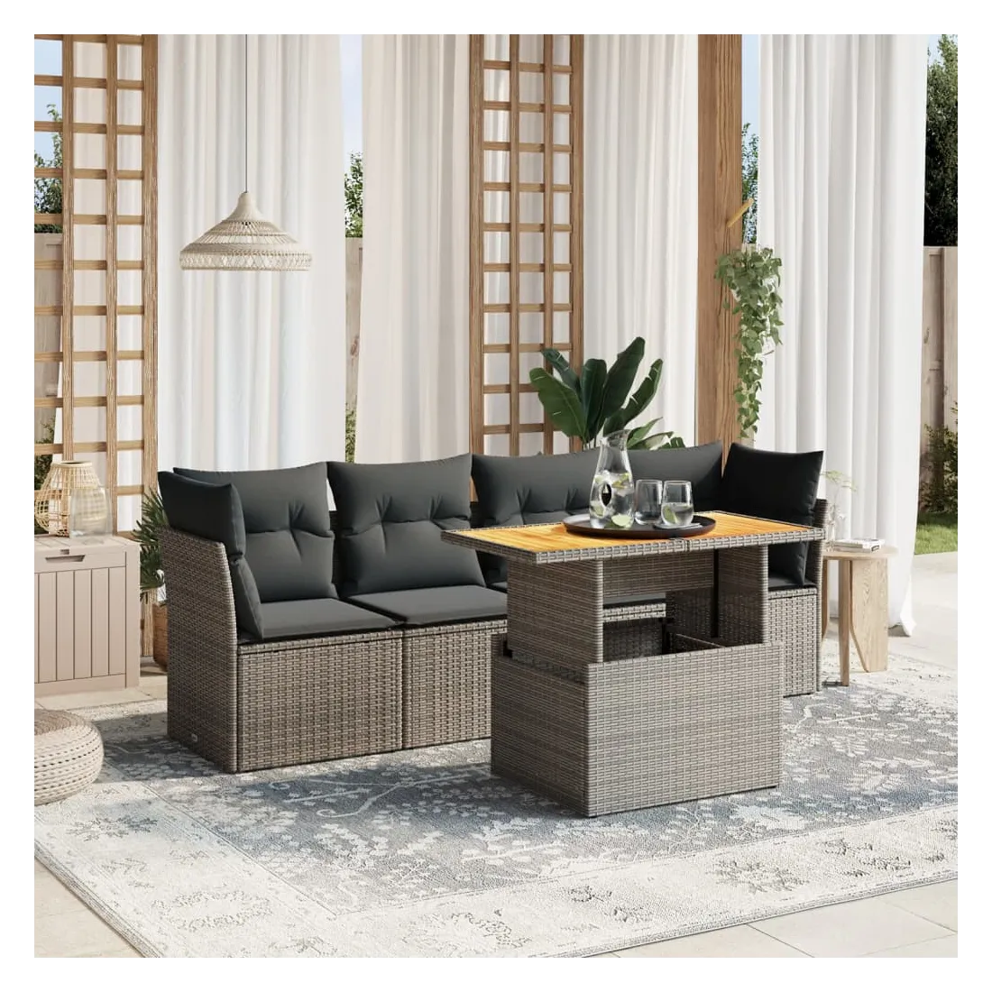 Cet ensemble de canapés de jardin est le complément parfait de votre arrière-cour, terrasse ou patio, offrant un espace confortable et accueillant pour discuter avec la famille et les amis ou simplement se détendre et profiter de l'extérieur. Matériau durable : la résine tressée, également connue sous le nom de poly rotin, est un matériau synthétique solide et nécessitant peu d'entretien qui ressemble au rotin naturel. Il est léger, facile à nettoyer et couramment utilisé pour les meubles d'extérieur en raison de sa durabilité et de ses propriétés de résistance aux intempéries.Dessus de table réglable : le dessus de table peut être soulevé pour rendre la table plus haute, ce qui transforme la table d'extérieur d'une table basse à une table de salle à manger. Elle est parfaite pour recevoir des invités ou prendre des repas à l'extérieur.Expérience d'assise confortable : ce mobilier d'extérieur, doté de coussins épais, offre une expérience d'assise confortable.Housse amovible et lavable : ces coussins de siège sont dotés de housses amovibles pour un lavage et un entretien faciles.Conception modulaire : cet ensemble de meubles d'extérieur a une conception modulaire, ce qui le rend complètement flexible et facile à déplacer, afin que vous puissiez créer un agencement de meubles d'extérieur personnalisé. Bon à savoir :Pour que vos meubles d'extérieur restent beaux, nous vous recommandons de les protéger avec une housse imperméable.