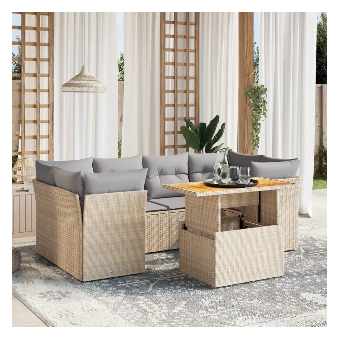 Cet ensemble de canapés de jardin est le complément parfait de votre arrière-cour, terrasse ou patio, offrant un espace confortable et accueillant pour discuter avec la famille et les amis ou simplement se détendre et profiter de l'extérieur. Matériau durable : la résine tressée, également connue sous le nom de poly rotin, est un matériau synthétique solide et nécessitant peu d'entretien qui ressemble au rotin naturel. Il est léger, facile à nettoyer et couramment utilisé pour les meubles d'extérieur en raison de sa durabilité et de ses propriétés de résistance aux intempéries.Dessus de table réglable : le dessus de table peut être soulevé pour rendre la table plus haute, ce qui transforme la table d'extérieur d'une table basse à une table de salle à manger. Elle est parfaite pour recevoir des invités ou prendre des repas à l'extérieur.Expérience d'assise confortable : ce mobilier d'extérieur, doté de coussins épais, offre une expérience d'assise confortable.Housse amovible et lavable : ces coussins de siège sont dotés de housses amovibles pour un lavage et un entretien faciles.Conception modulaire : cet ensemble de meubles d'extérieur a une conception modulaire, ce qui le rend complètement flexible et facile à déplacer, afin que vous puissiez créer un agencement de meubles d'extérieur personnalisé. Bon à savoir :Pour que vos meubles d'extérieur restent beaux, nous vous recommandons de les protéger avec une housse imperméable.