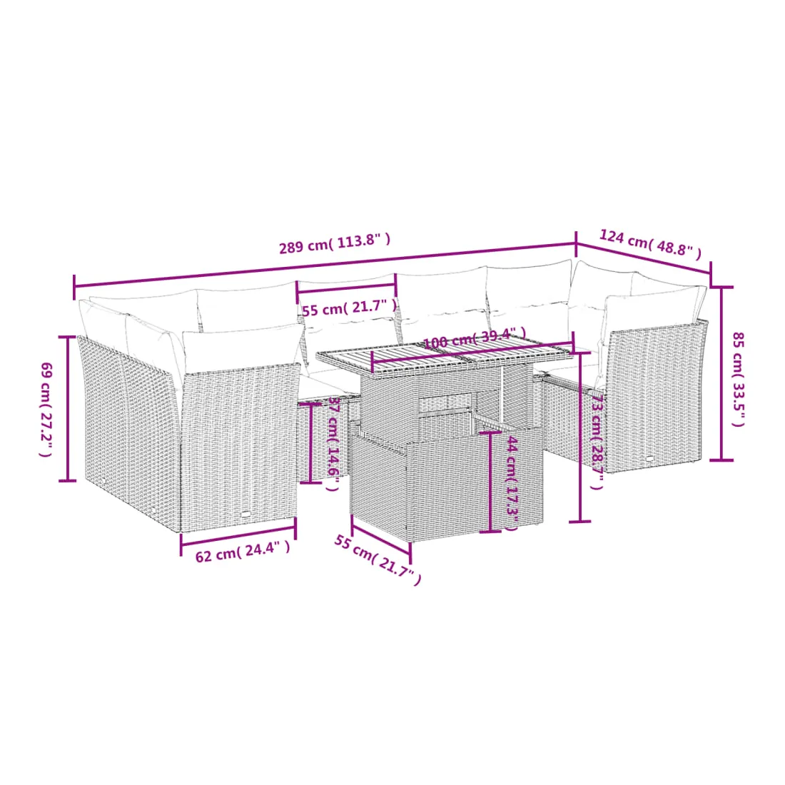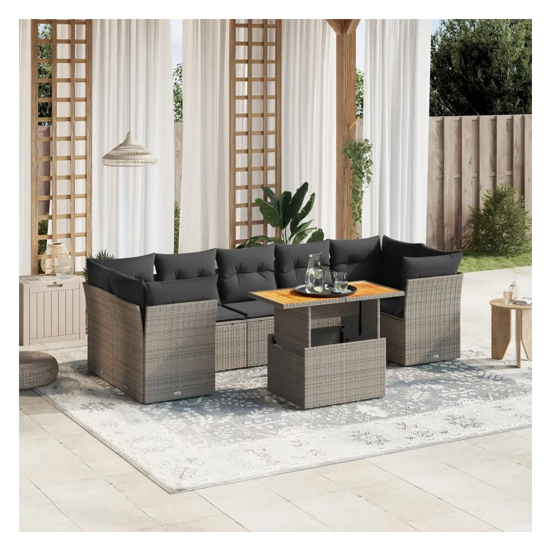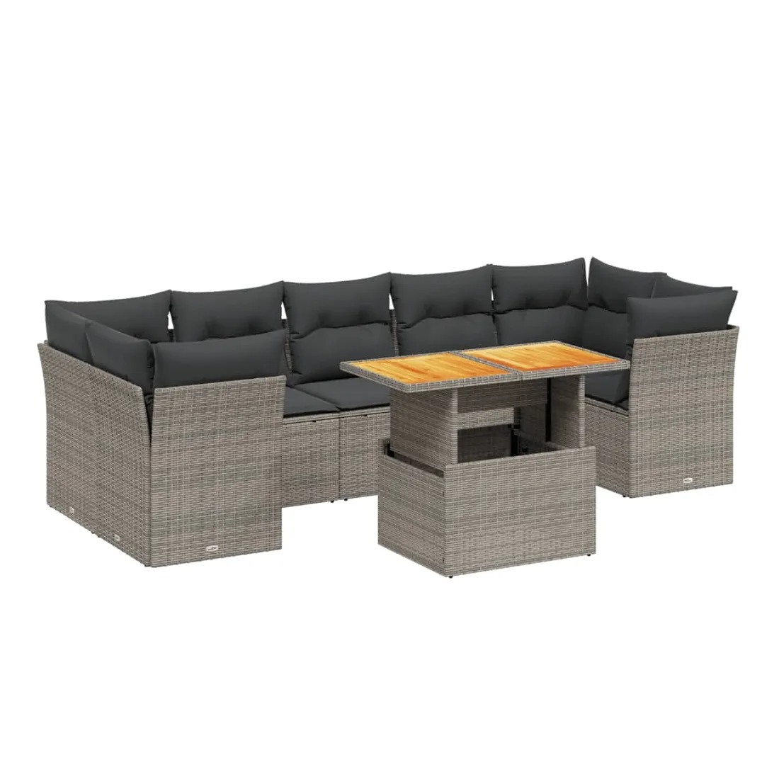 Salon de jardin 8 pcs avec coussins gris résine tressée