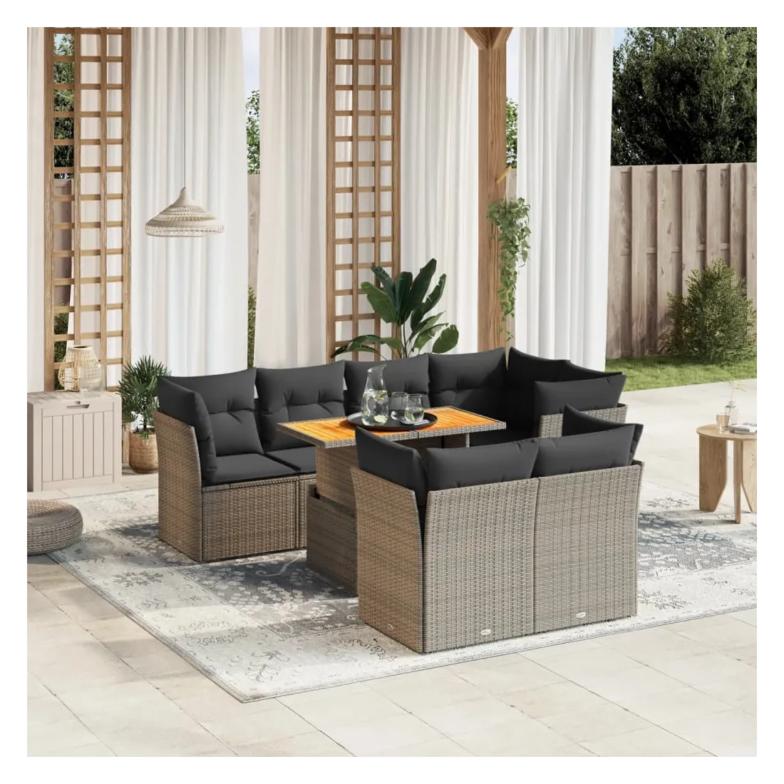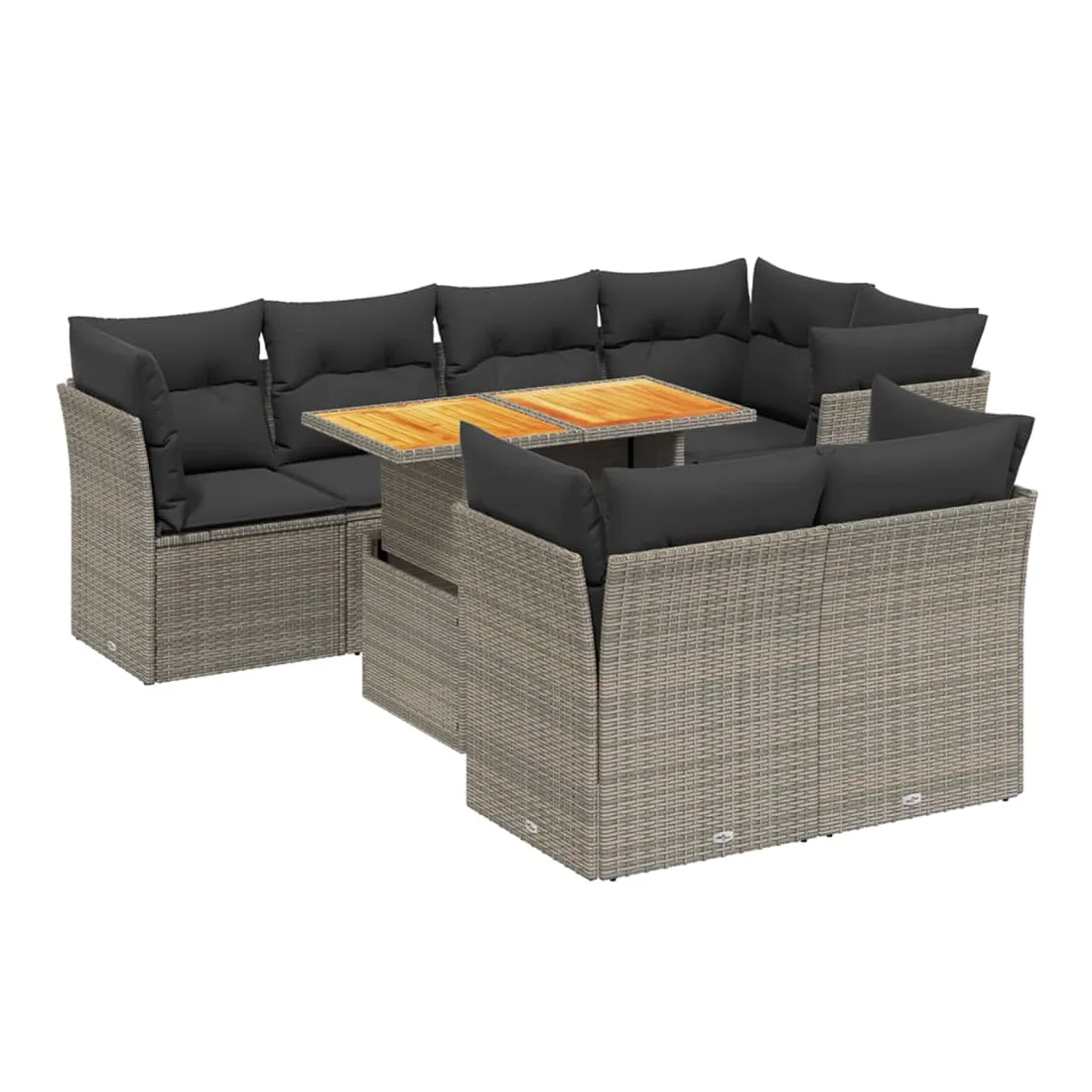 Cet ensemble de canapés de jardin est le complément parfait de votre arrière-cour, terrasse ou patio, offrant un espace confortable et accueillant pour discuter avec la famille et les amis ou simplement se détendre et profiter de l'extérieur. Matériau durable : la résine tressée, également connue sous le nom de poly rotin, est un matériau synthétique solide et nécessitant peu d'entretien qui ressemble au rotin naturel. Il est léger, facile à nettoyer et couramment utilisé pour les meubles d'extérieur en raison de sa durabilité et de ses propriétés de résistance aux intempéries.Dessus de table réglable : le dessus de table peut être soulevé pour rendre la table plus haute, ce qui transforme la table d'extérieur d'une table basse à une table de salle à manger. Elle est parfaite pour recevoir des invités ou prendre des repas à l'extérieur.Expérience d'assise confortable : ce mobilier d'extérieur, doté de coussins épais, offre une expérience d'assise confortable.Housse amovible et lavable : ces coussins de siège sont dotés de housses amovibles pour un lavage et un entretien faciles.Conception modulaire : cet ensemble de meubles d'extérieur a une conception modulaire, ce qui le rend complètement flexible et facile à déplacer, afin que vous puissiez créer un agencement de meubles d'extérieur personnalisé. Bon à savoir :Pour que vos meubles d'extérieur restent beaux, nous vous recommandons de les protéger avec une housse imperméable.
