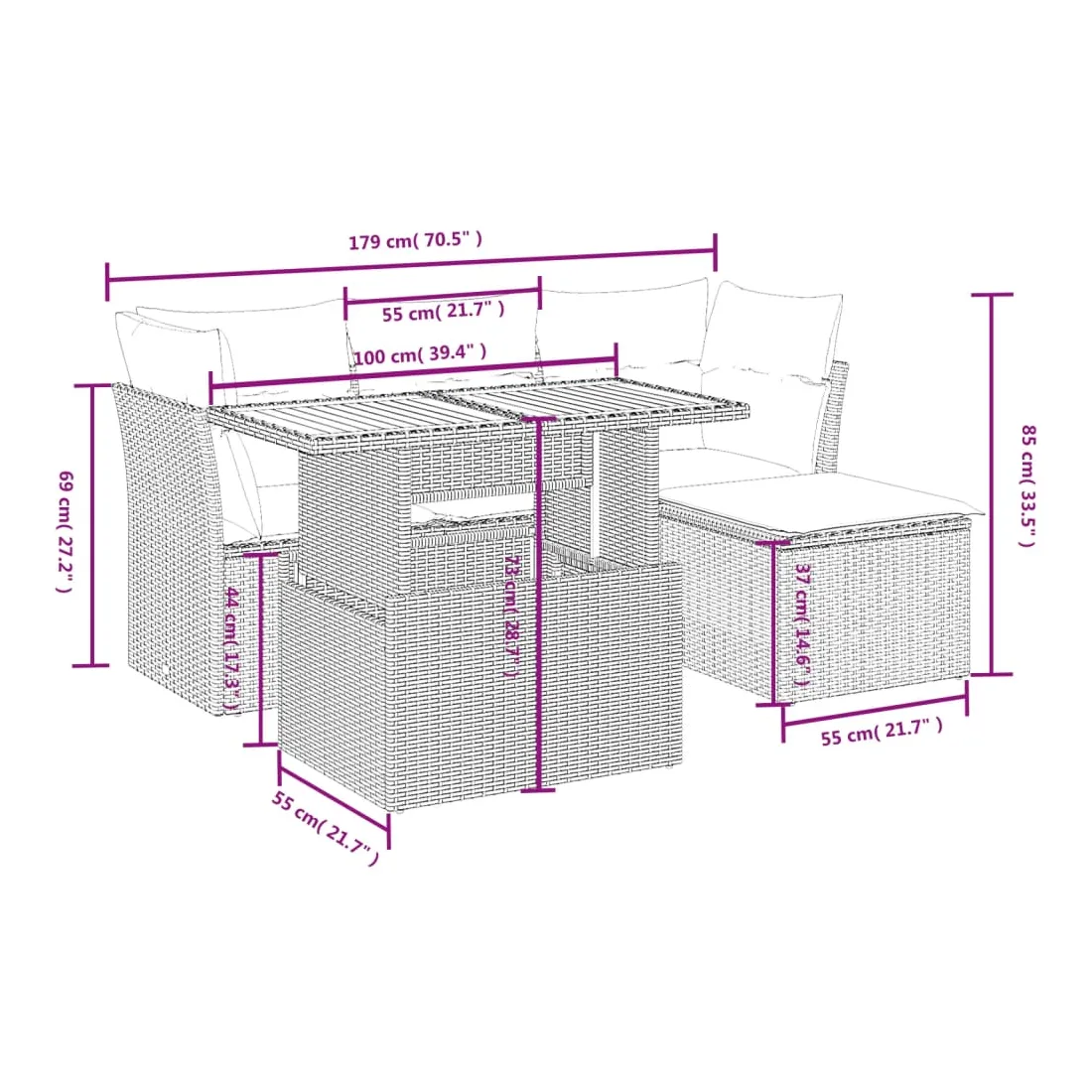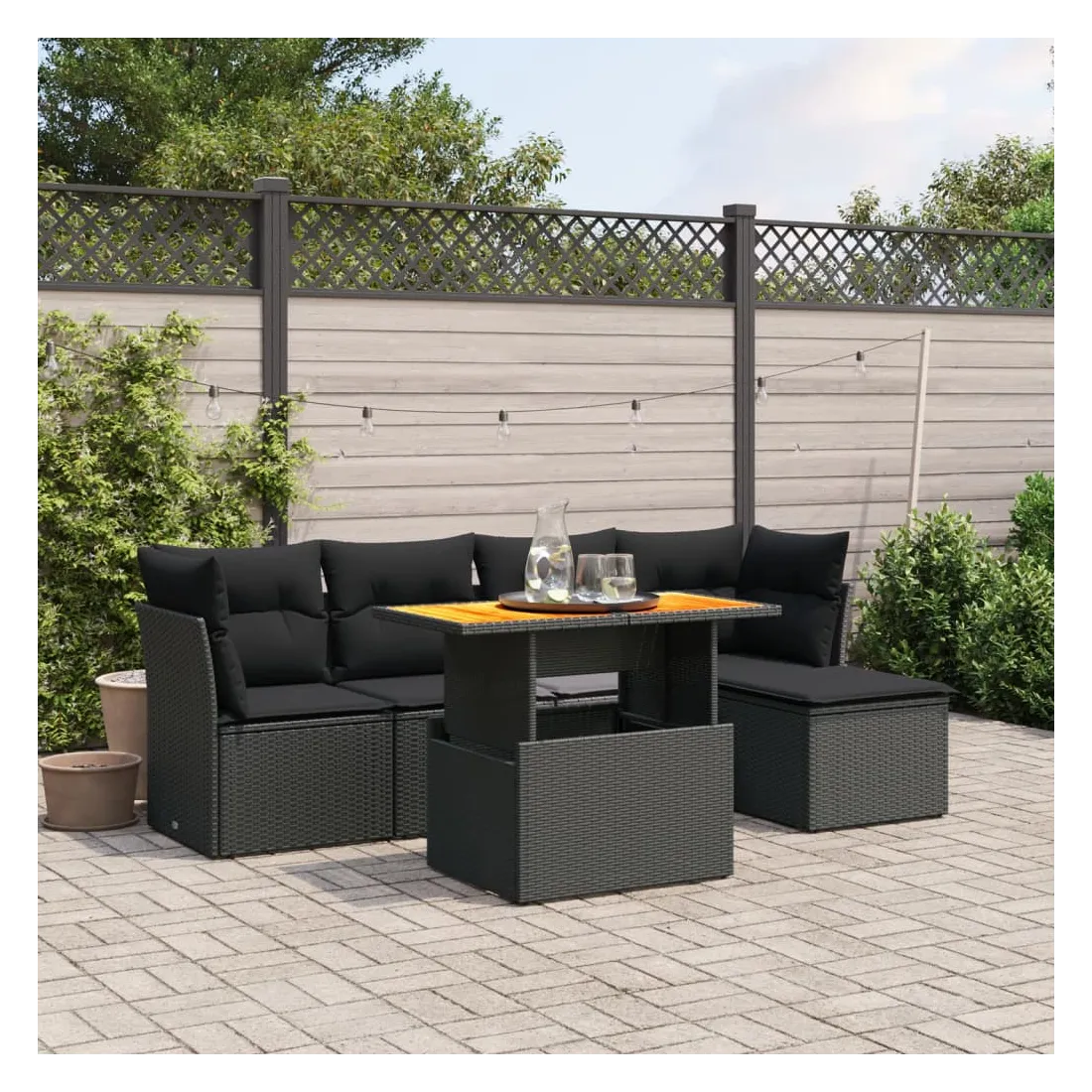 Cet ensemble de canapés de jardin est le complément parfait de votre arrière-cour, terrasse ou patio, offrant un espace confortable et accueillant pour discuter avec la famille et les amis ou simplement se détendre et profiter de l'extérieur. Matériau durable : la résine tressée, également connue sous le nom de poly rotin, est un matériau synthétique solide et nécessitant peu d'entretien qui ressemble au rotin naturel. Il est léger, facile à nettoyer et couramment utilisé pour les meubles d'extérieur en raison de sa durabilité et de ses propriétés de résistance aux intempéries.Dessus de table réglable : le dessus de table peut être soulevé pour rendre la table plus haute, ce qui transforme la table d'extérieur d'une table basse à une table de salle à manger. Elle est parfaite pour recevoir des invités ou prendre des repas à l'extérieur.Expérience d'assise confortable : ce mobilier d'extérieur, doté de coussins épais, offre une expérience d'assise confortable.Housse amovible et lavable : ces coussins de siège sont dotés de housses amovibles pour un lavage et un entretien faciles.Conception modulaire : cet ensemble de meubles d'extérieur a une conception modulaire, ce qui le rend complètement flexible et facile à déplacer, afin que vous puissiez créer un agencement de meubles d'extérieur personnalisé. Bon à savoir :Pour que vos meubles d'extérieur restent beaux, nous vous recommandons de les protéger avec une housse imperméable.