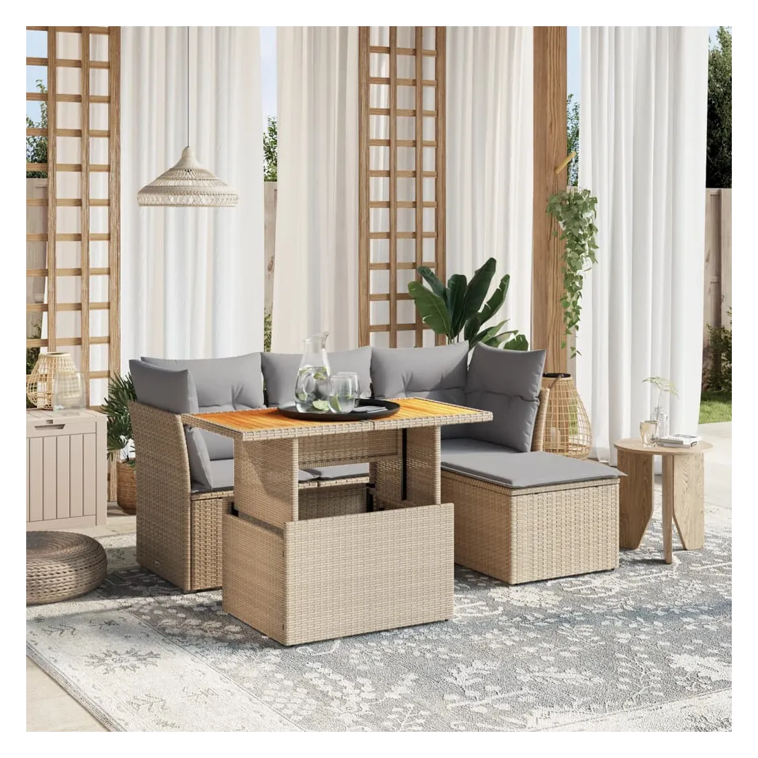 Cet ensemble de canapés de jardin est le complément parfait de votre arrière-cour, terrasse ou patio, offrant un espace confortable et accueillant pour discuter avec la famille et les amis ou simplement se détendre et profiter de l'extérieur. Matériau durable : la résine tressée, également connue sous le nom de poly rotin, est un matériau synthétique solide et nécessitant peu d'entretien qui ressemble au rotin naturel. Il est léger, facile à nettoyer et couramment utilisé pour les meubles d'extérieur en raison de sa durabilité et de ses propriétés de résistance aux intempéries.Dessus de table réglable : le dessus de table peut être soulevé pour rendre la table plus haute, ce qui transforme la table d'extérieur d'une table basse à une table de salle à manger. Elle est parfaite pour recevoir des invités ou prendre des repas à l'extérieur.Expérience d'assise confortable : ce mobilier d'extérieur, doté de coussins épais, offre une expérience d'assise confortable.Housse amovible et lavable : ces coussins de siège sont dotés de housses amovibles pour un lavage et un entretien faciles.Conception modulaire : cet ensemble de meubles d'extérieur a une conception modulaire, ce qui le rend complètement flexible et facile à déplacer, afin que vous puissiez créer un agencement de meubles d'extérieur personnalisé. Bon à savoir :Pour que vos meubles d'extérieur restent beaux, nous vous recommandons de les protéger avec une housse imperméable.