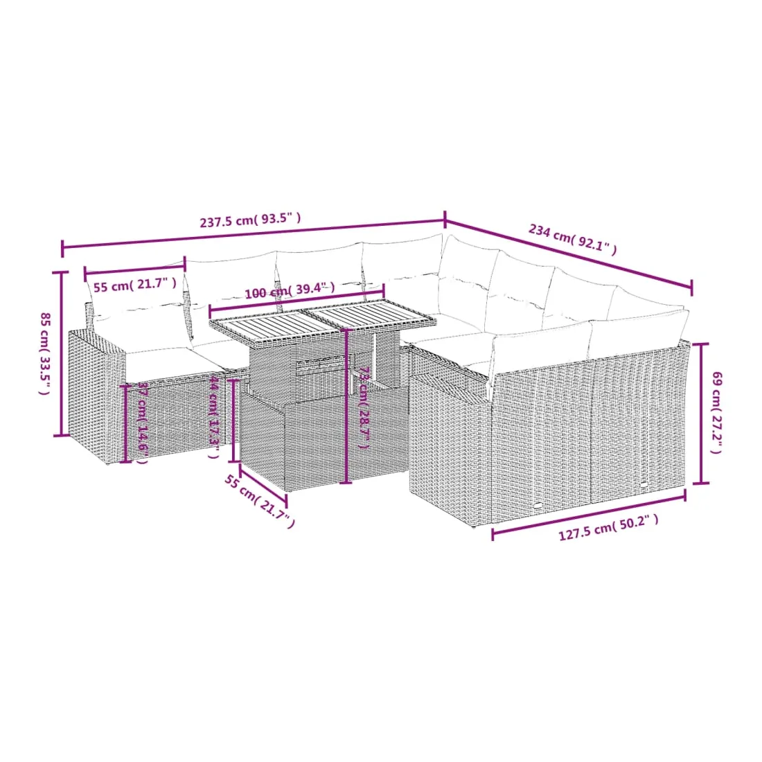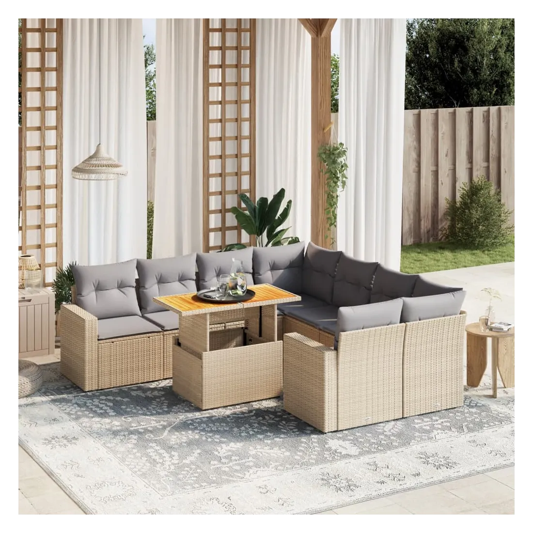 Cet ensemble de canapés de jardin est le complément parfait de votre arrière-cour, terrasse ou patio, offrant un espace confortable et accueillant pour discuter avec la famille et les amis ou simplement se détendre et profiter de l'extérieur. Matériau durable : la résine tressée, également connue sous le nom de poly rotin, est un matériau synthétique solide et nécessitant peu d'entretien qui ressemble au rotin naturel. Il est léger, facile à nettoyer et couramment utilisé pour les meubles d'extérieur en raison de sa durabilité et de ses propriétés de résistance aux intempéries.Dessus de table réglable : le dessus de table peut être soulevé pour rendre la table plus haute, ce qui transforme la table d'extérieur d'une table basse à une table de salle à manger. Elle est parfaite pour recevoir des invités ou prendre des repas à l'extérieur.Expérience d'assise confortable : ce mobilier d'extérieur, doté de coussins épais, offre une expérience d'assise confortable.Housse amovible et lavable : ces coussins de siège sont dotés de housses amovibles pour un lavage et un entretien faciles.Conception modulaire : cet ensemble de meubles d'extérieur a une conception modulaire, ce qui le rend complètement flexible et facile à déplacer, afin que vous puissiez créer un agencement de meubles d'extérieur personnalisé. Bon à savoir :Pour que vos meubles d'extérieur restent beaux, nous vous recommandons de les protéger avec une housse imperméable.
