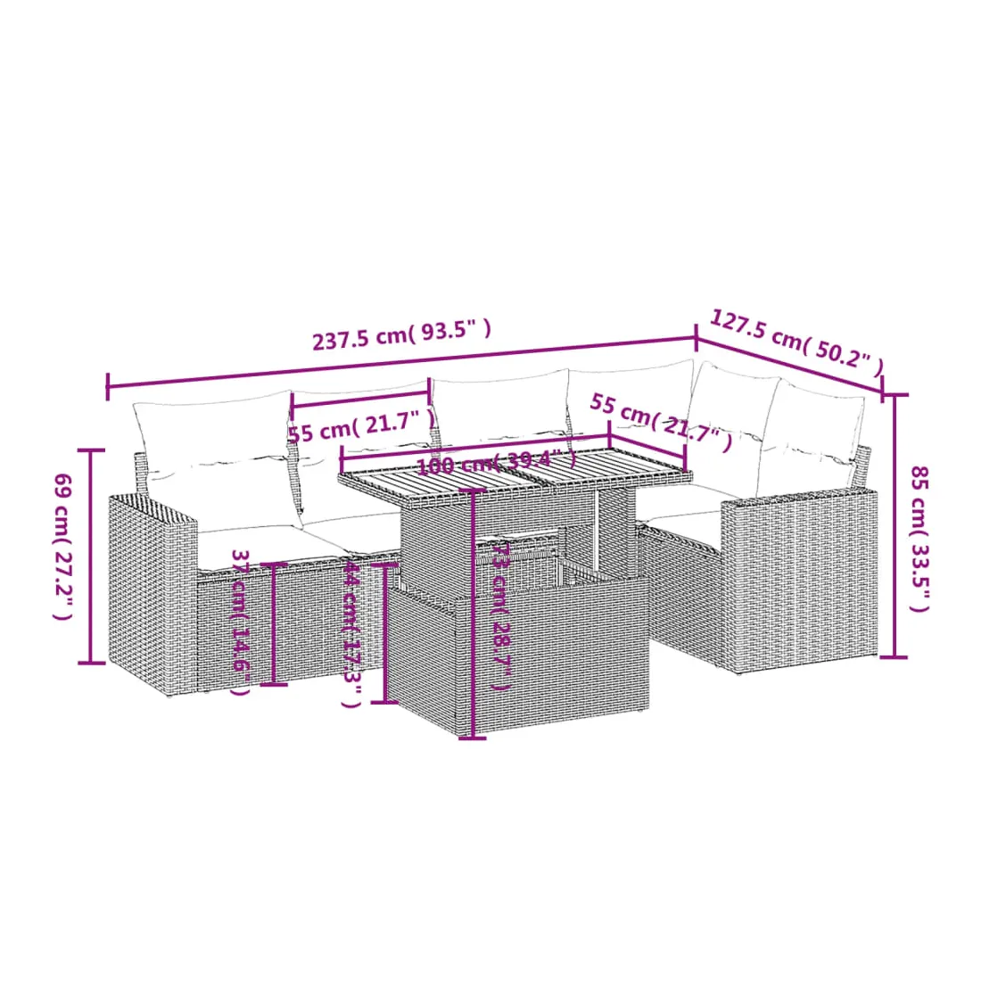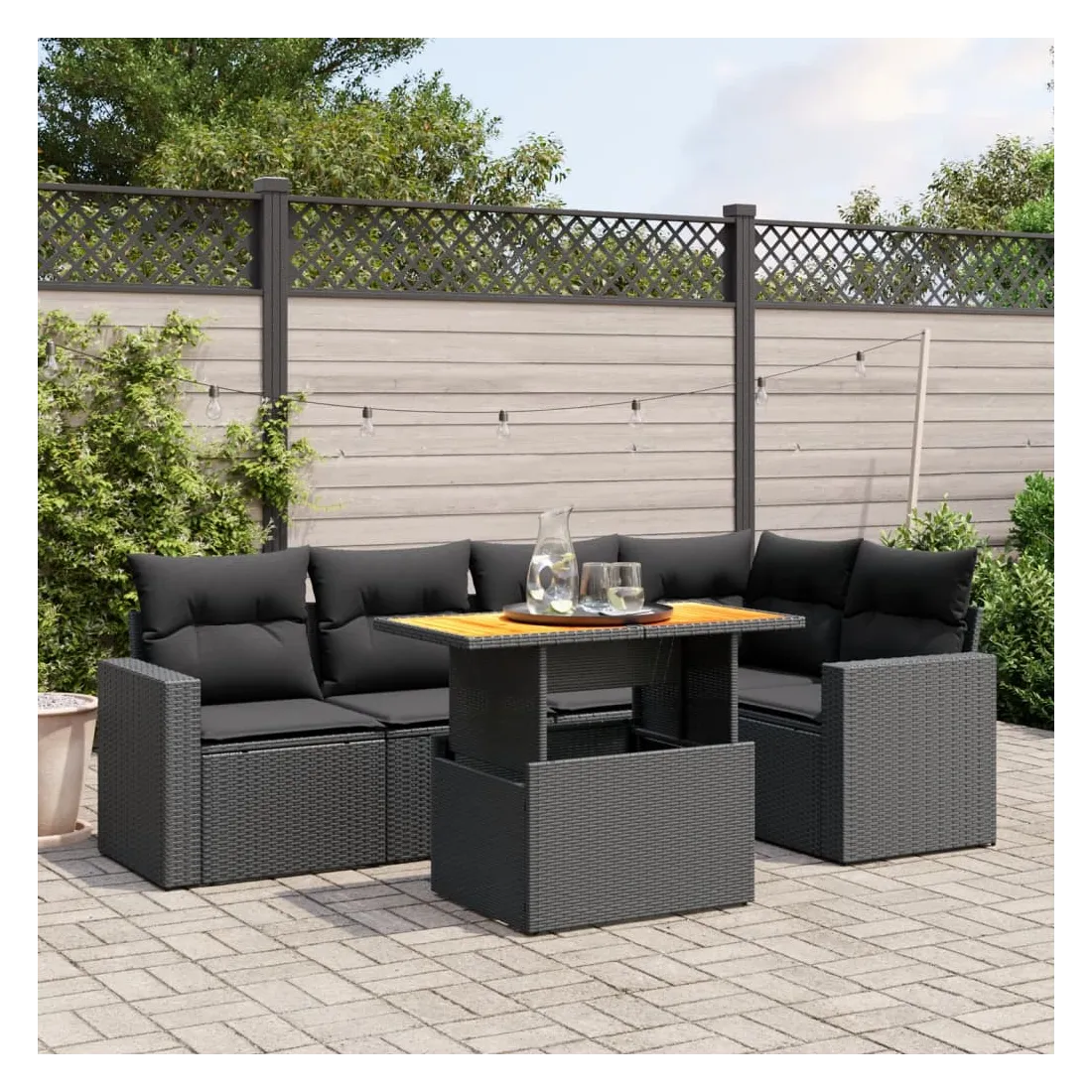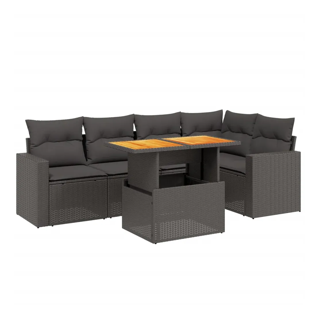 Cet ensemble de canapés de jardin est le complément parfait de votre arrière-cour, terrasse ou patio, offrant un espace confortable et accueillant pour discuter avec la famille et les amis ou simplement se détendre et profiter de l'extérieur. Matériau durable : la résine tressée, également connue sous le nom de poly rotin, est un matériau synthétique solide et nécessitant peu d'entretien qui ressemble au rotin naturel. Il est léger, facile à nettoyer et couramment utilisé pour les meubles d'extérieur en raison de sa durabilité et de ses propriétés de résistance aux intempéries.Dessus de table réglable : le dessus de table peut être soulevé pour rendre la table plus haute, ce qui transforme la table d'extérieur d'une table basse à une table de salle à manger. Elle est parfaite pour recevoir des invités ou prendre des repas à l'extérieur.Expérience d'assise confortable : ce mobilier d'extérieur, doté de coussins épais, offre une expérience d'assise confortable.Housse amovible et lavable : ces coussins de siège sont dotés de housses amovibles pour un lavage et un entretien faciles.Conception modulaire : cet ensemble de meubles d'extérieur a une conception modulaire, ce qui le rend complètement flexible et facile à déplacer, afin que vous puissiez créer un agencement de meubles d'extérieur personnalisé. Bon à savoir :Pour que vos meubles d'extérieur restent beaux, nous vous recommandons de les protéger avec une housse imperméable.
