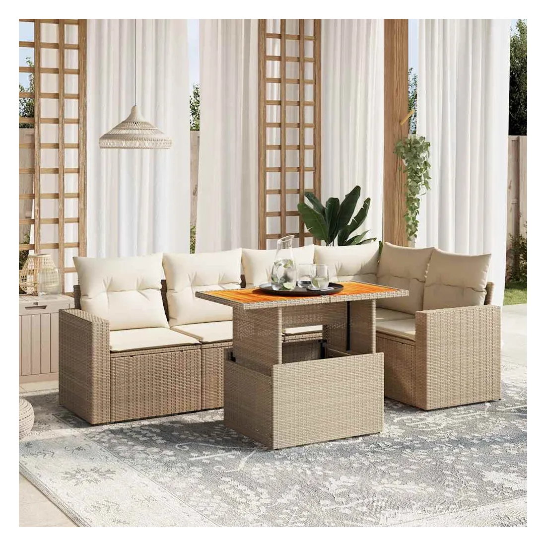 Salon de jardin avec coussins 6 pcs beige résine tressée