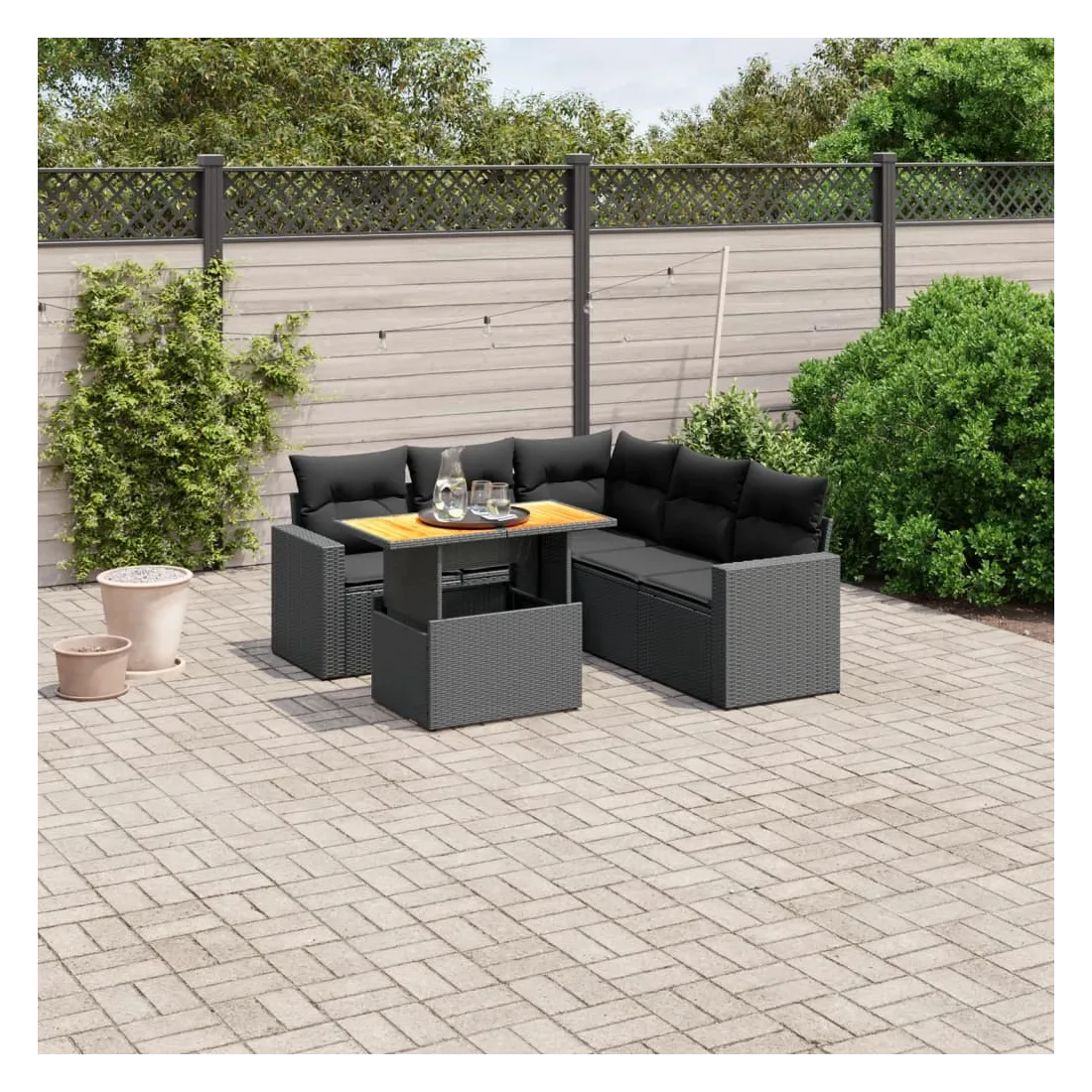 Cet ensemble de canapés de jardin est le complément parfait de votre arrière-cour, terrasse ou patio, offrant un espace confortable et accueillant pour discuter avec la famille et les amis ou simplement se détendre et profiter de l'extérieur. Matériau durable : la résine tressée, également connue sous le nom de poly rotin, est un matériau synthétique solide et nécessitant peu d'entretien qui ressemble au rotin naturel. Il est léger, facile à nettoyer et couramment utilisé pour les meubles d'extérieur en raison de sa durabilité et de ses propriétés de résistance aux intempéries.Dessus de table réglable : le dessus de table peut être soulevé pour rendre la table plus haute, ce qui transforme la table d'extérieur d'une table basse à une table de salle à manger. Elle est parfaite pour recevoir des invités ou prendre des repas à l'extérieur.Expérience d'assise confortable : ce mobilier d'extérieur, doté de coussins épais, offre une expérience d'assise confortable.Housse amovible et lavable : ces coussins de siège sont dotés de housses amovibles pour un lavage et un entretien faciles.Conception modulaire : cet ensemble de meubles d'extérieur a une conception modulaire, ce qui le rend complètement flexible et facile à déplacer, afin que vous puissiez créer un agencement de meubles d'extérieur personnalisé. Bon à savoir :Pour que vos meubles d'extérieur restent beaux, nous vous recommandons de les protéger avec une housse imperméable.
