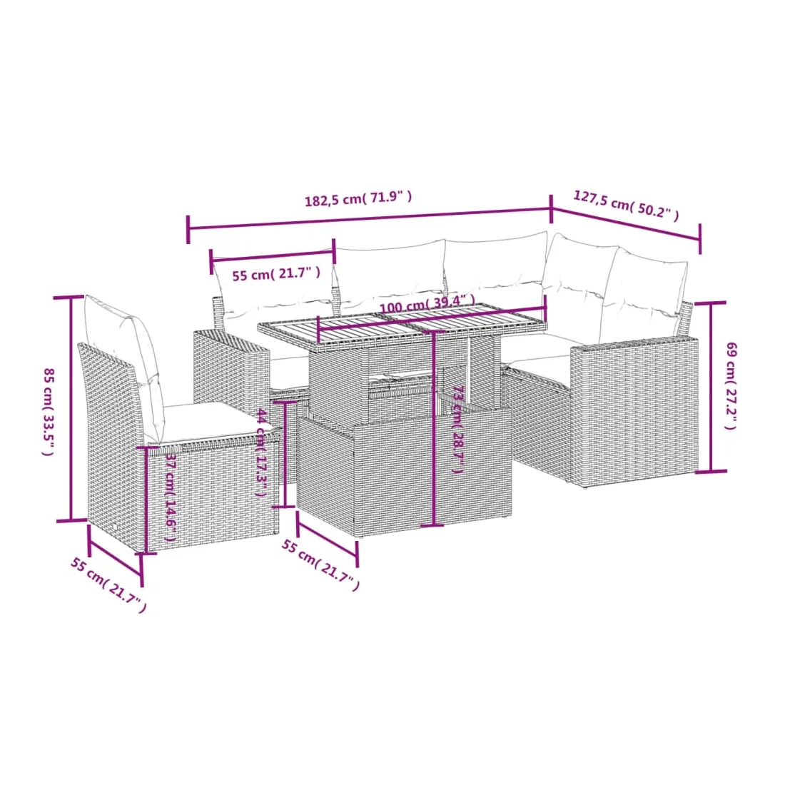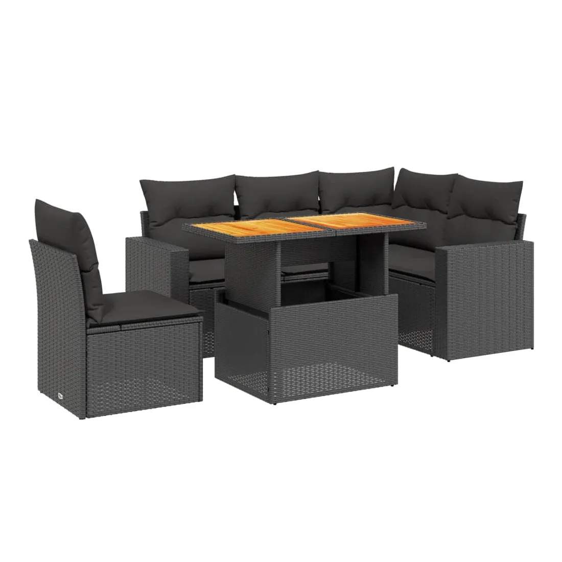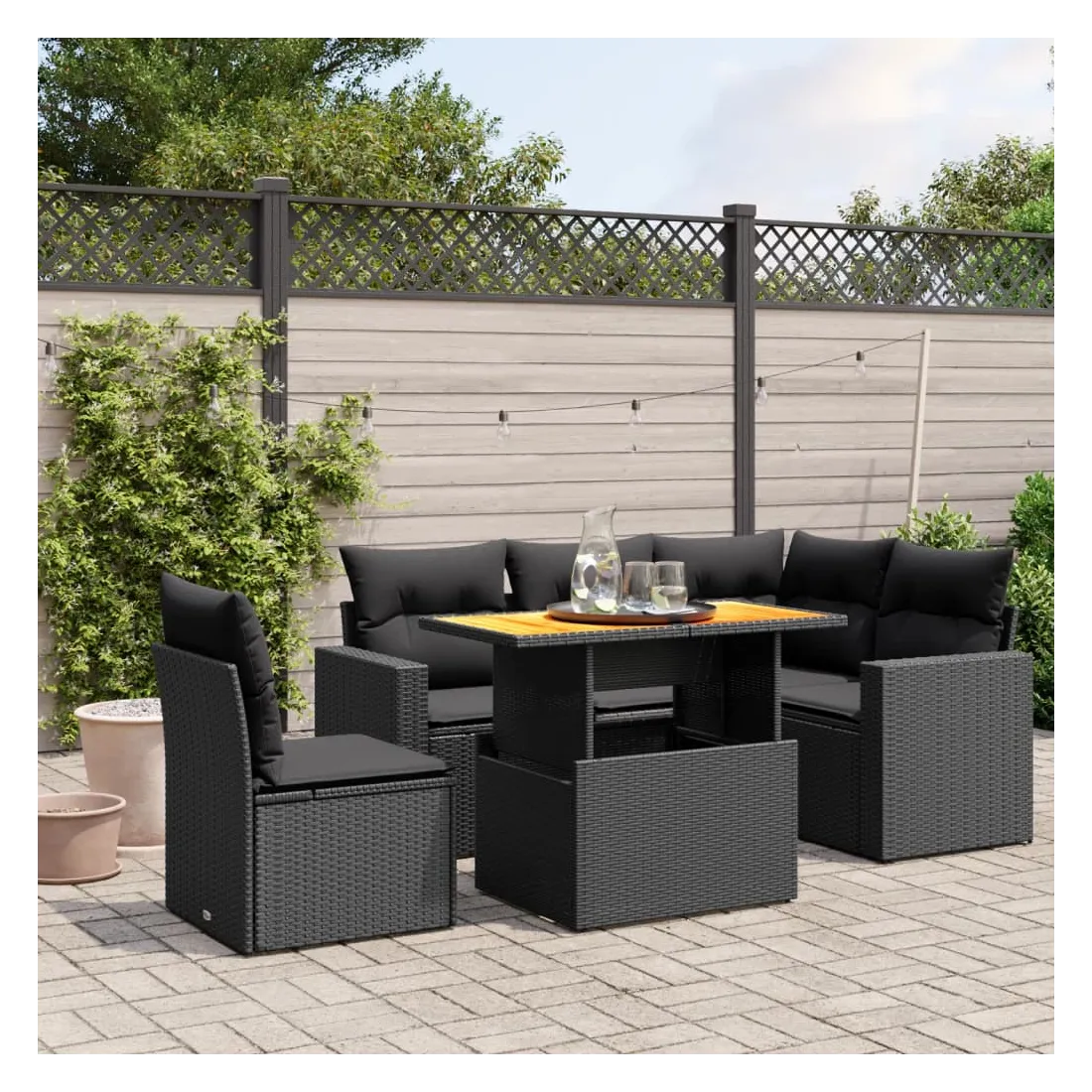 Salon de jardin 6 pcs avec coussins noir résine tressée