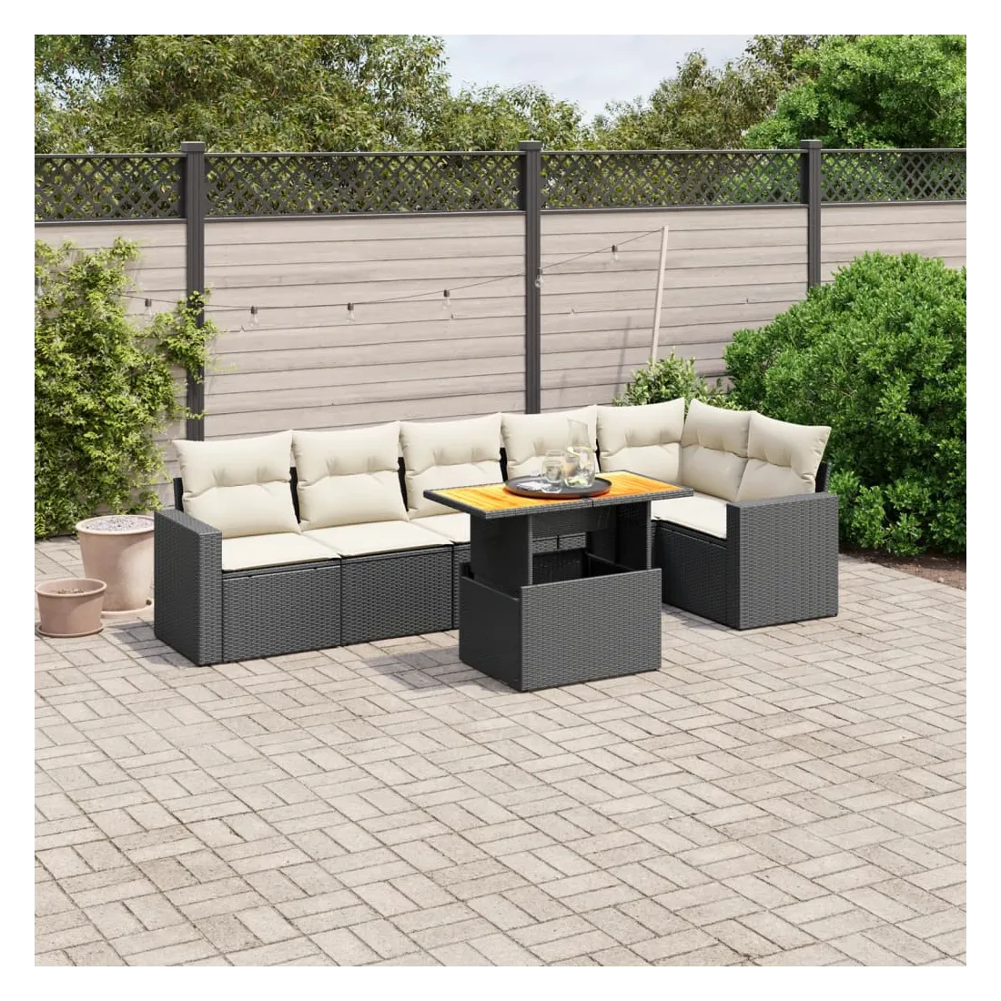Salon de jardin 7 pcs avec coussins noir résine tressée