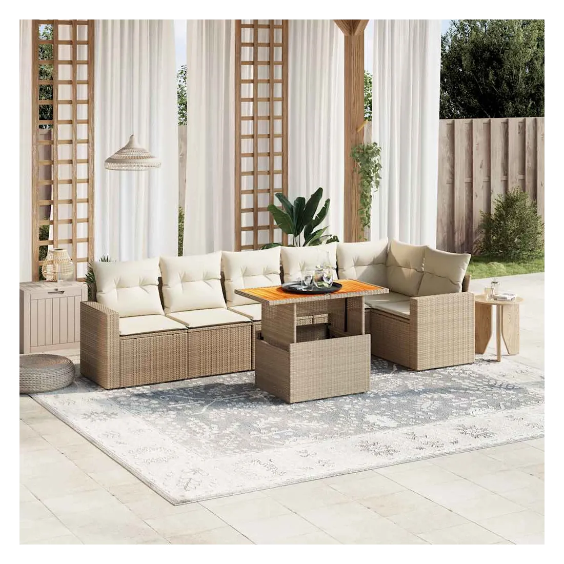 Cet ensemble de canapés de jardin est le complément parfait de votre arrière-cour, terrasse ou patio, offrant un espace confortable et accueillant pour discuter avec la famille et les amis ou simplement se détendre et profiter de l'extérieur. Matériau durable : la résine tressée, également connue sous le nom de poly rotin, est un matériau synthétique solide et nécessitant peu d'entretien qui ressemble au rotin naturel. Il est léger, facile à nettoyer et couramment utilisé pour les meubles d'extérieur en raison de sa durabilité et de ses propriétés de résistance aux intempéries.Dessus de table réglable : le dessus de table peut être soulevé pour rendre la table plus haute, ce qui transforme la table d'extérieur d'une table basse à une table de salle à manger. Elle est parfaite pour recevoir des invités ou prendre des repas à l'extérieur.Expérience d'assise confortable : ce mobilier d'extérieur, doté de coussins épais, offre une expérience d'assise confortable.Housse amovible et lavable : ces coussins de siège sont dotés de housses amovibles pour un lavage et un entretien faciles.Conception modulaire : cet ensemble de meubles d'extérieur a une conception modulaire, ce qui le rend complètement flexible et facile à déplacer, afin que vous puissiez créer un agencement de meubles d'extérieur personnalisé. Bon à savoir :Pour que vos meubles d'extérieur restent beaux, nous vous recommandons de les protéger avec une housse imperméable.