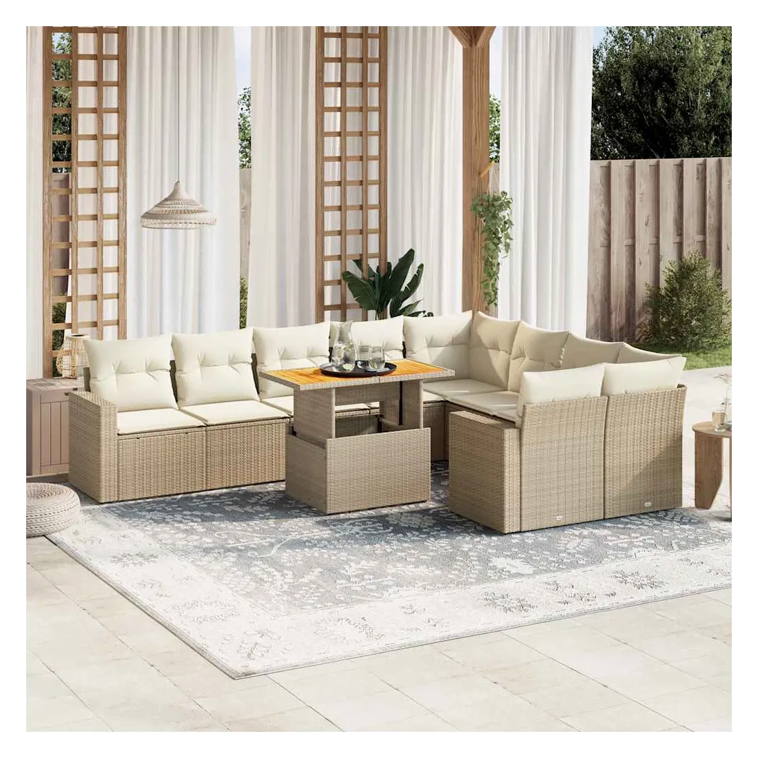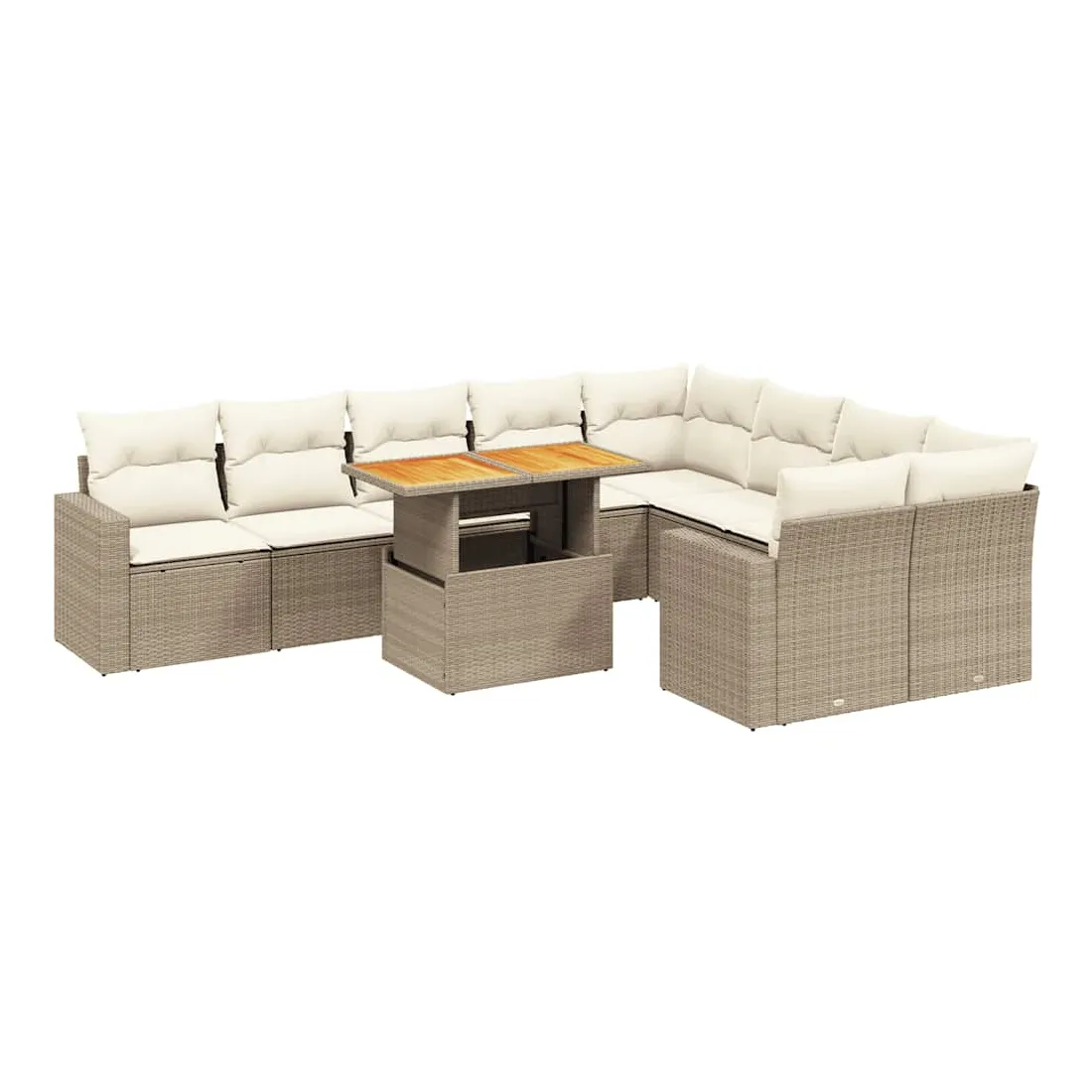 Salon de jardin avec coussins 10 pcs beige résine tressée