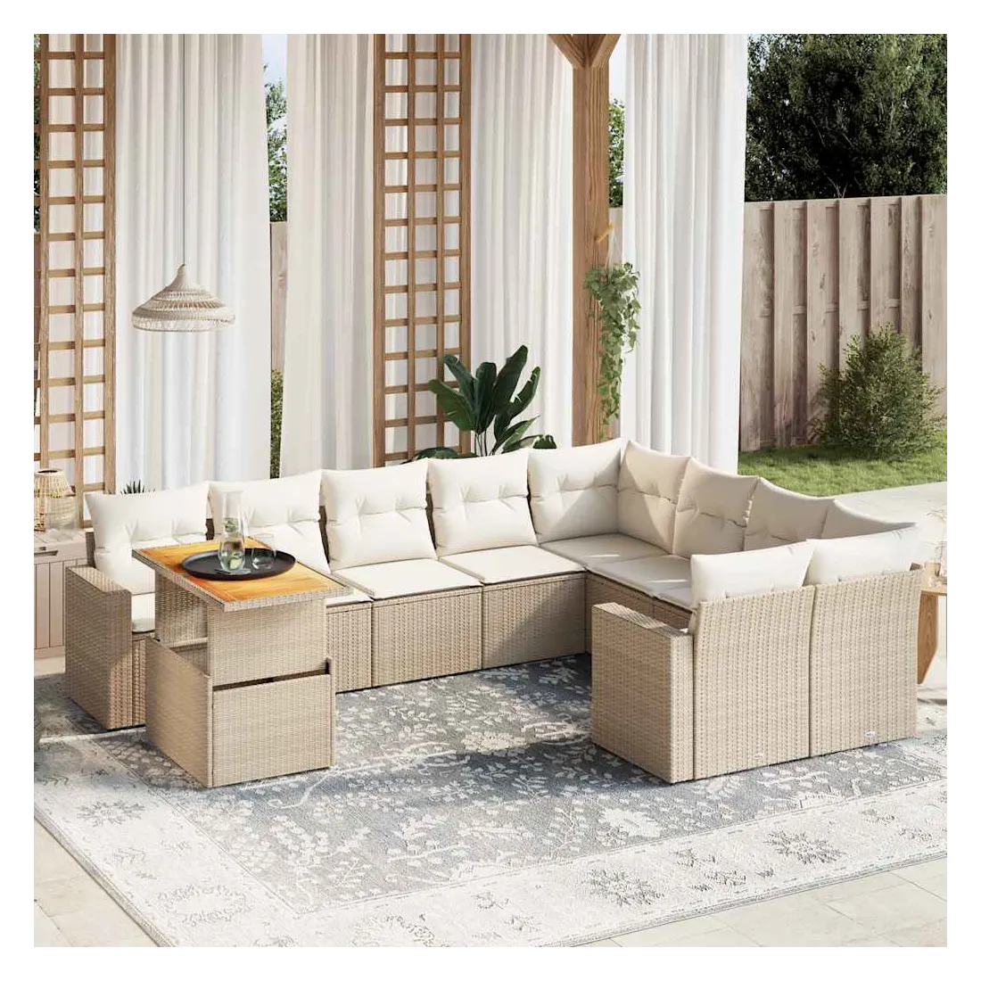 Salon de jardin avec coussins 10 pcs beige résine tressée