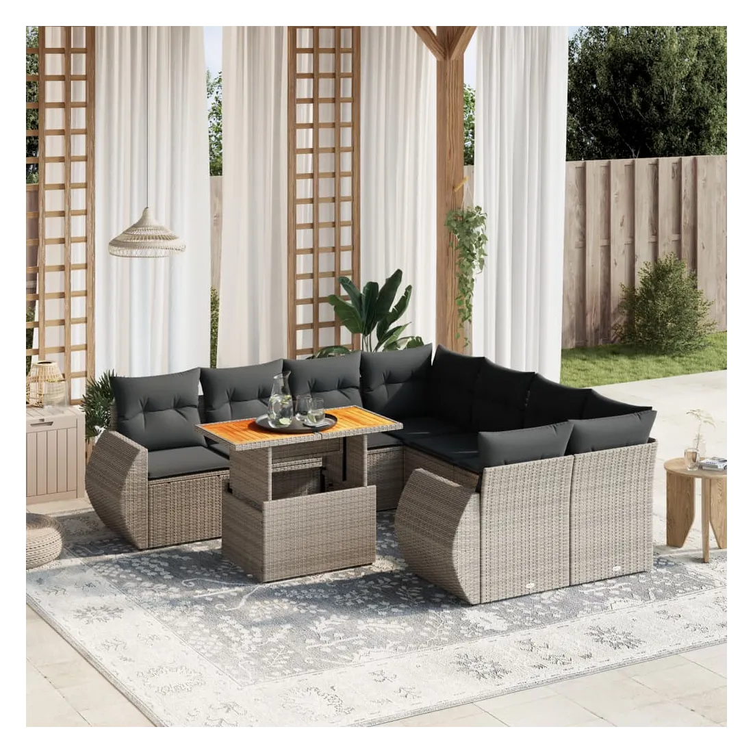 Cet ensemble de canapés de jardin est le complément parfait de votre arrière-cour, terrasse ou patio, offrant un espace confortable et accueillant pour discuter avec la famille et les amis ou simplement se détendre et profiter de l'extérieur. Matériau durable : la résine tressée, également connue sous le nom de poly rotin, est un matériau synthétique solide et nécessitant peu d'entretien qui ressemble au rotin naturel. Il est léger, facile à nettoyer et couramment utilisé pour les meubles d'extérieur en raison de sa durabilité et de ses propriétés de résistance aux intempéries.Dessus de table réglable : le dessus de table peut être soulevé pour rendre la table plus haute, ce qui transforme la table d'extérieur d'une table basse à une table de salle à manger. Elle est parfaite pour recevoir des invités ou prendre des repas à l'extérieur.Expérience d'assise confortable : ce mobilier d'extérieur, doté de coussins épais, offre une expérience d'assise confortable.Housse amovible et lavable : ces coussins de siège sont dotés de housses amovibles pour un lavage et un entretien faciles.Conception modulaire : cet ensemble de meubles d'extérieur a une conception modulaire, ce qui le rend complètement flexible et facile à déplacer, afin que vous puissiez créer un agencement de meubles d'extérieur personnalisé. Bon à savoir :Pour que vos meubles d'extérieur restent beaux, nous vous recommandons de les protéger avec une housse imperméable.