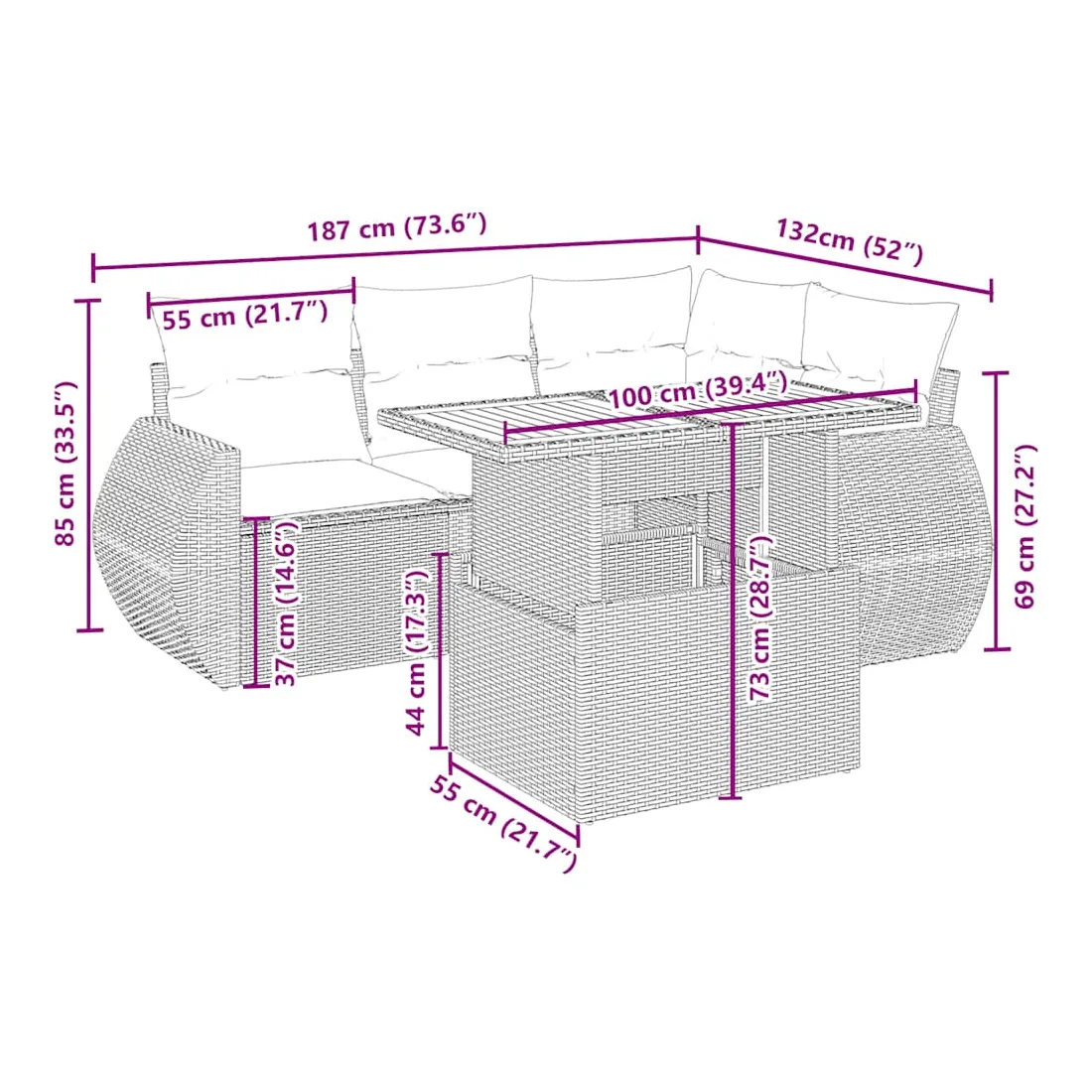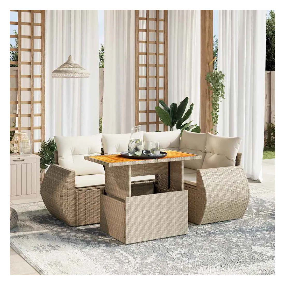 Cet ensemble de canapés de jardin est le complément parfait de votre arrière-cour, terrasse ou patio, offrant un espace confortable et accueillant pour discuter avec la famille et les amis ou simplement se détendre et profiter de l'extérieur. Matériau durable : la résine tressée, également connue sous le nom de poly rotin, est un matériau synthétique solide et nécessitant peu d'entretien qui ressemble au rotin naturel. Il est léger, facile à nettoyer et couramment utilisé pour les meubles d'extérieur en raison de sa durabilité et de ses propriétés de résistance aux intempéries.Dessus de table réglable : le dessus de table peut être soulevé pour rendre la table plus haute, ce qui transforme la table d'extérieur d'une table basse à une table de salle à manger. Elle est parfaite pour recevoir des invités ou prendre des repas à l'extérieur.Expérience d'assise confortable : ce mobilier d'extérieur, doté de coussins épais, offre une expérience d'assise confortable.Housse amovible et lavable : ces coussins de siège sont dotés de housses amovibles pour un lavage et un entretien faciles.Conception modulaire : cet ensemble de meubles d'extérieur a une conception modulaire, ce qui le rend complètement flexible et facile à déplacer, afin que vous puissiez créer un agencement de meubles d'extérieur personnalisé. Bon à savoir :Pour que vos meubles d'extérieur restent beaux, nous vous recommandons de les protéger avec une housse imperméable.