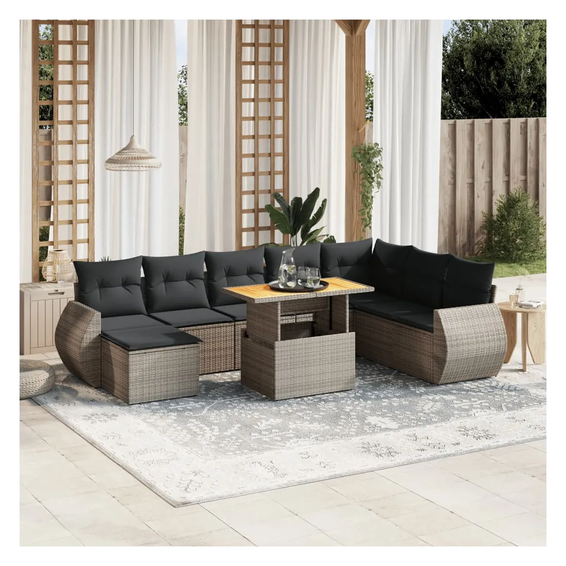 Cet ensemble de canapés de jardin est le complément parfait de votre arrière-cour, terrasse ou patio, offrant un espace confortable et accueillant pour discuter avec la famille et les amis ou simplement se détendre et profiter de l'extérieur. Matériau durable : la résine tressée, également connue sous le nom de poly rotin, est un matériau synthétique solide et nécessitant peu d'entretien qui ressemble au rotin naturel. Il est léger, facile à nettoyer et couramment utilisé pour les meubles d'extérieur en raison de sa durabilité et de ses propriétés de résistance aux intempéries.Dessus de table réglable : le dessus de table peut être soulevé pour rendre la table plus haute, ce qui transforme la table d'extérieur d'une table basse à une table de salle à manger. Elle est parfaite pour recevoir des invités ou prendre des repas à l'extérieur.Expérience d'assise confortable : ce mobilier d'extérieur, doté de coussins épais, offre une expérience d'assise confortable.Housse amovible et lavable : ces coussins de siège sont dotés de housses amovibles pour un lavage et un entretien faciles.Conception modulaire : cet ensemble de meubles d'extérieur a une conception modulaire, ce qui le rend complètement flexible et facile à déplacer, afin que vous puissiez créer un agencement de meubles d'extérieur personnalisé. Bon à savoir :Pour que vos meubles d'extérieur restent beaux, nous vous recommandons de les protéger avec une housse imperméable.
