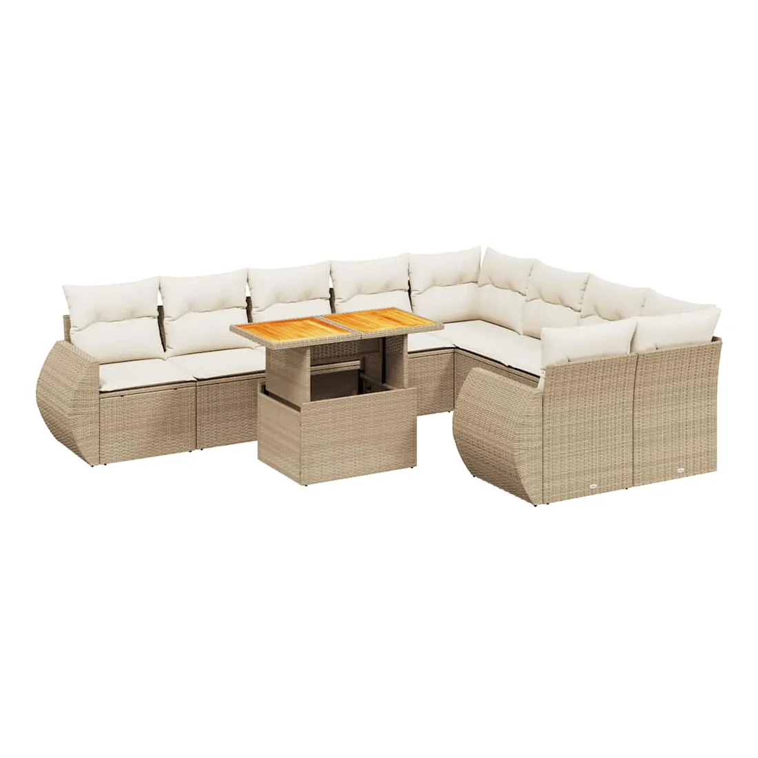 Salon de jardin avec coussins 10 pcs beige résine tressée