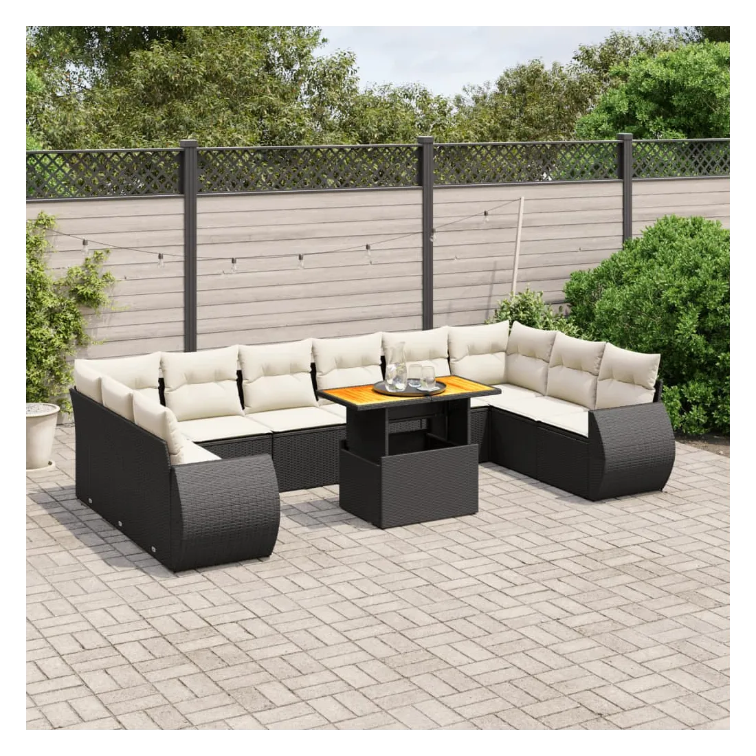 Cet ensemble de canapés de jardin est le complément parfait de votre arrière-cour, terrasse ou patio, offrant un espace confortable et accueillant pour discuter avec la famille et les amis ou simplement se détendre et profiter de l'extérieur. Matériau durable : la résine tressée, également connue sous le nom de poly rotin, est un matériau synthétique solide et nécessitant peu d'entretien qui ressemble au rotin naturel. Il est léger, facile à nettoyer et couramment utilisé pour les meubles d'extérieur en raison de sa durabilité et de ses propriétés de résistance aux intempéries.Dessus de table réglable : le dessus de table peut être soulevé pour rendre la table plus haute, ce qui transforme la table d'extérieur d'une table basse à une table de salle à manger. Elle est parfaite pour recevoir des invités ou prendre des repas à l'extérieur.Expérience d'assise confortable : ce mobilier d'extérieur, doté de coussins épais, offre une expérience d'assise confortable.Housse amovible et lavable : ces coussins de siège sont dotés de housses amovibles pour un lavage et un entretien faciles.Conception modulaire : cet ensemble de meubles d'extérieur a une conception modulaire, ce qui le rend complètement flexible et facile à déplacer, afin que vous puissiez créer un agencement de meubles d'extérieur personnalisé. Bon à savoir :Pour que vos meubles d'extérieur restent beaux, nous vous recommandons de les protéger avec une housse imperméable.