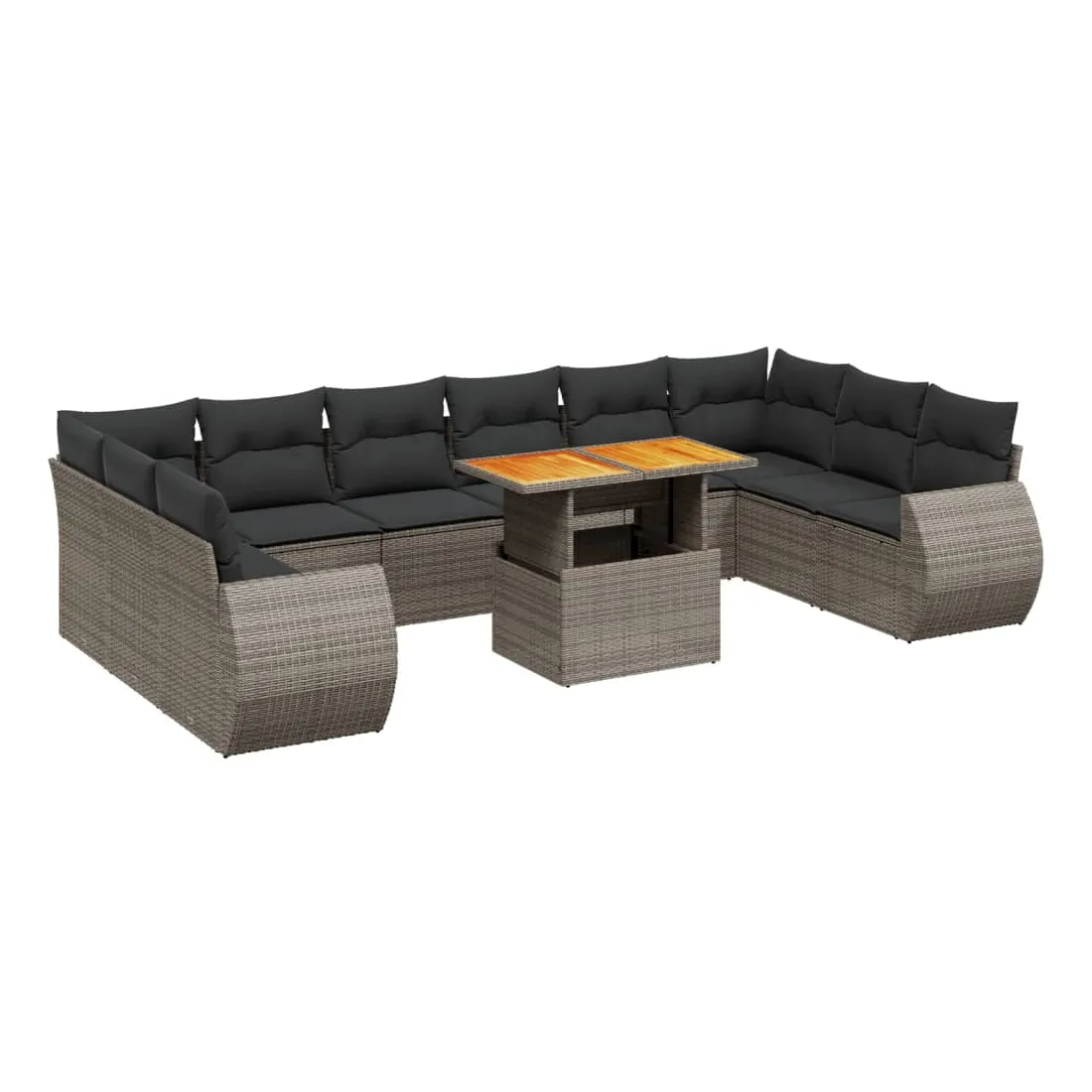 Cet ensemble de canapés de jardin est le complément parfait de votre arrière-cour, terrasse ou patio, offrant un espace confortable et accueillant pour discuter avec la famille et les amis ou simplement se détendre et profiter de l'extérieur. Matériau durable : la résine tressée, également connue sous le nom de poly rotin, est un matériau synthétique solide et nécessitant peu d'entretien qui ressemble au rotin naturel. Il est léger, facile à nettoyer et couramment utilisé pour les meubles d'extérieur en raison de sa durabilité et de ses propriétés de résistance aux intempéries.Dessus de table réglable : le dessus de table peut être soulevé pour rendre la table plus haute, ce qui transforme la table d'extérieur d'une table basse à une table de salle à manger. Elle est parfaite pour recevoir des invités ou prendre des repas à l'extérieur.Expérience d'assise confortable : ce mobilier d'extérieur, doté de coussins épais, offre une expérience d'assise confortable.Housse amovible et lavable : ces coussins de siège sont dotés de housses amovibles pour un lavage et un entretien faciles.Conception modulaire : cet ensemble de meubles d'extérieur a une conception modulaire, ce qui le rend complètement flexible et facile à déplacer, afin que vous puissiez créer un agencement de meubles d'extérieur personnalisé. Bon à savoir :Pour que vos meubles d'extérieur restent beaux, nous vous recommandons de les protéger avec une housse imperméable.