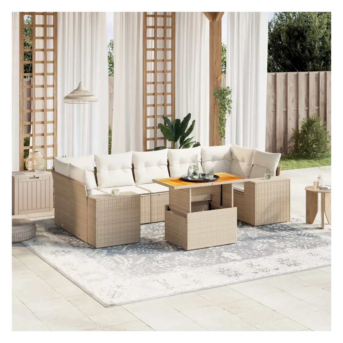 Cet ensemble de canapés de jardin est le complément parfait de votre arrière-cour, terrasse ou patio, offrant un espace confortable et accueillant pour discuter avec la famille et les amis ou simplement se détendre et profiter de l'extérieur. Matériau durable : la résine tressée, également connue sous le nom de poly rotin, est un matériau synthétique solide et nécessitant peu d'entretien qui ressemble au rotin naturel. Il est léger, facile à nettoyer et couramment utilisé pour les meubles d'extérieur en raison de sa durabilité et de ses propriétés de résistance aux intempéries.Dessus de table réglable : le dessus de table peut être soulevé pour rendre la table plus haute, ce qui transforme la table d'extérieur d'une table basse à une table de salle à manger. Elle est parfaite pour recevoir des invités ou prendre des repas à l'extérieur.Expérience d'assise confortable : ce mobilier d'extérieur, doté de coussins épais, offre une expérience d'assise confortable.Housse amovible et lavable : ces coussins de siège sont dotés de housses amovibles pour un lavage et un entretien faciles.Conception modulaire : cet ensemble de meubles d'extérieur a une conception modulaire, ce qui le rend complètement flexible et facile à déplacer, afin que vous puissiez créer un agencement de meubles d'extérieur personnalisé. Bon à savoir :Pour que vos meubles d'extérieur restent beaux, nous vous recommandons de les protéger avec une housse imperméable.